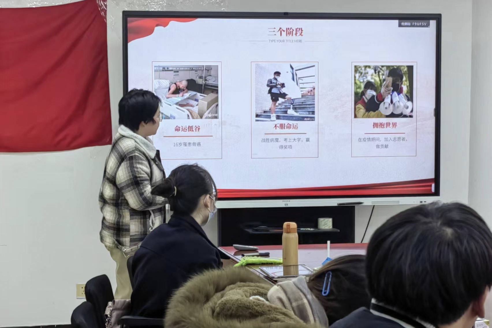 讨论会伊始,代班主持李佳芮同学向大家讲述了最美大学生赵德煜和革命先烈李大钊的先进事迹。其中,2020年度中国大学生自强之星获得者赵德煜顽强战胜病魔。他也曾是那个在阴霾里挣扎的少年,用尽全力丈量生命的长度,不管是命运低谷,还是日日夜夜的病痛,都从未打倒他。赵德煜积极配合治疗,并勤奋学习、跟随爱好,获得多项比赛奖项,同时毅然决然加入志愿者队列,淋过雨的孩子用自己的方式为更多的人撑起伞,恪守着传媒人经世致用的时代使命。而中国共产主义的先驱李大钊,不仅担起了最早传播马克思主义的担子,还领导建立了北京的共产党早期组织。在最终极端危险和困难的情况下,李大钊领导并亲自参加了北京人民反帝反军阀斗争,被捕后在狱中他备受酷刑,但始终大义凛然,坚贞不屈。他的身上充分体现了积极向上、百折不挠、刚毅进取的民族精神,令人深深感动。