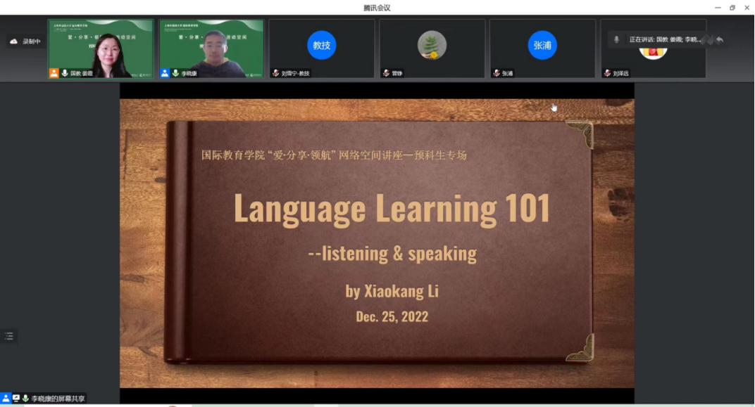 在前期关于预科生关切的问题调研活动中,我们共收到来自25位预科生提出的12个问题,包括预科生活规划、专业学习、爱情观等多个方面。针对同学们提出的问题,我们分别举办两场“爱·分享·领航”网络空间交流活动。本期为活动第二期,由国际教育学院教师,上外英语语言文学专业博士,上外英语角创始人李晓康博士解答同学们在语言学习中碰到的各类困难,分享外语学习的方法与路径。