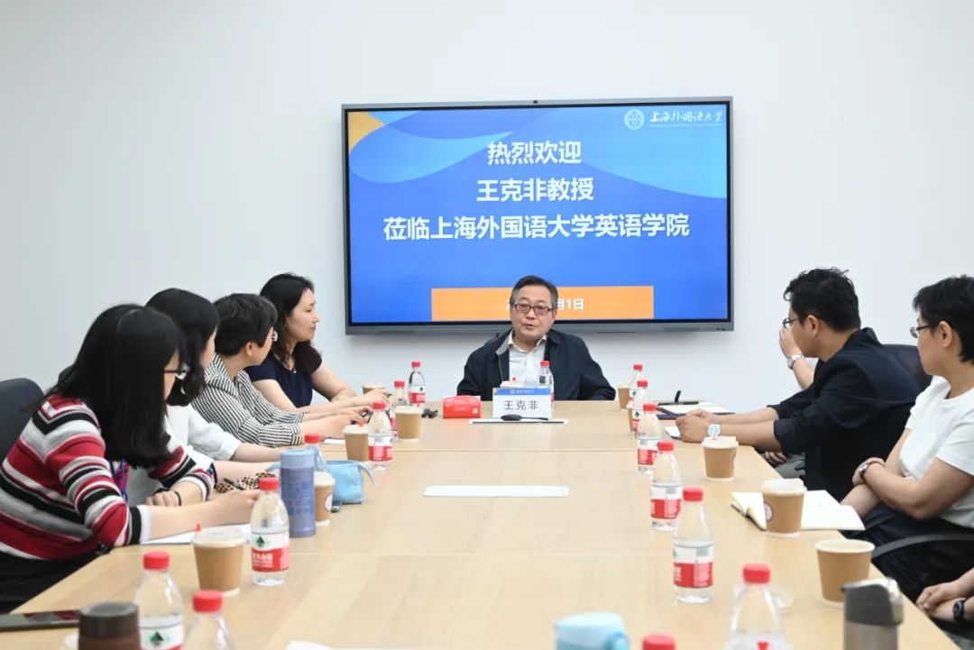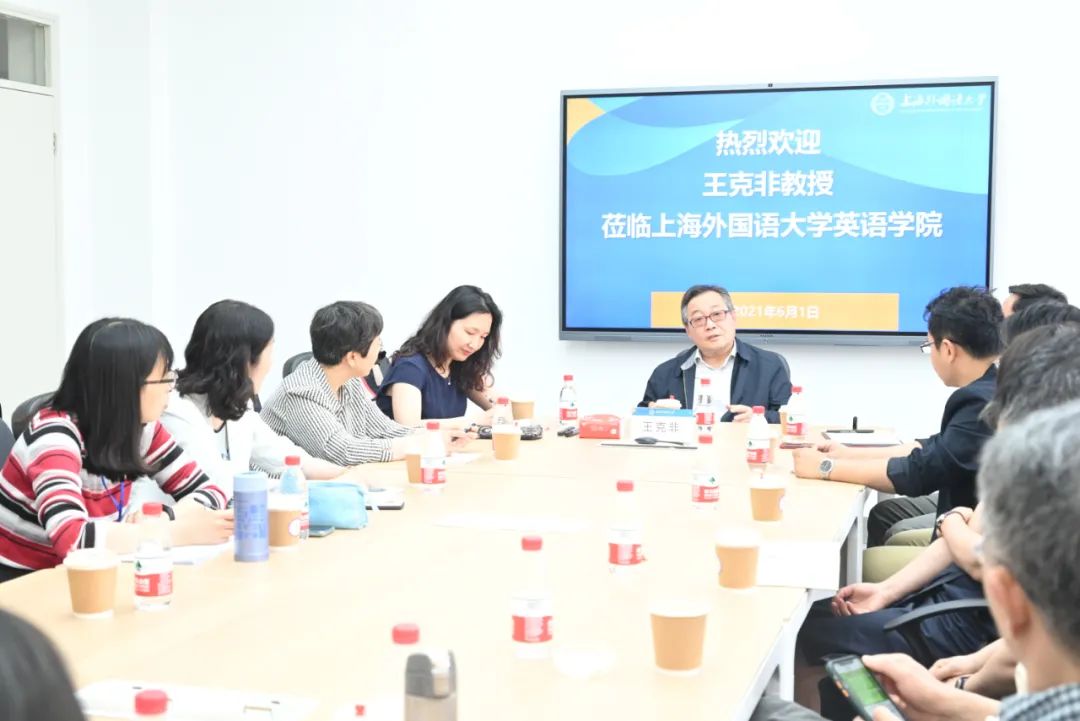 6月1日下午,北京外国语大学讲席教授、《外语教学与研究》主编王克非教授受邀莅临我院,与我院教师进行座谈交流。院长王欣主持座谈,王光林、孙胜忠、王岚、王腊宝、吴其尧、傅玉、陈琦、孙珊珊、王沁、李梅、赵璧、周朝刚、孙麟等多位学院教师参与座谈。