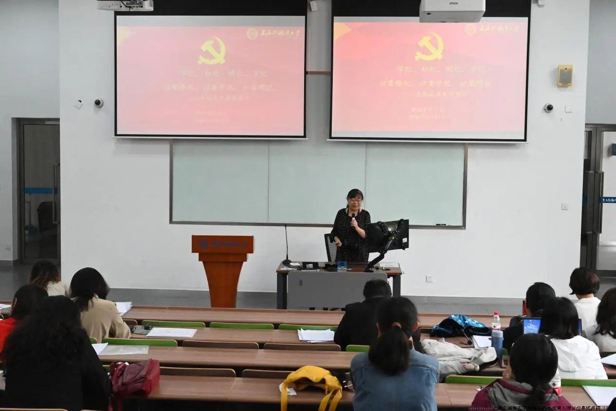 学院党委纪检委员许立冰开展《以案释纪、以案学纪、以案明纪——违纪违法典型案例》专题教育。许老师紧扣《中国共产党纪律处分条例》及《新时代高校教师职业行为十项准则》相关内容,重点选取教育领域违反政治纪律、违反中央八项规定精神、违反工作纪律、违反生活纪律、违法犯罪等方面的典型案例进行剖析,强调全体教职工要从中汲取深刻教训,以案为镜、正衣自省。