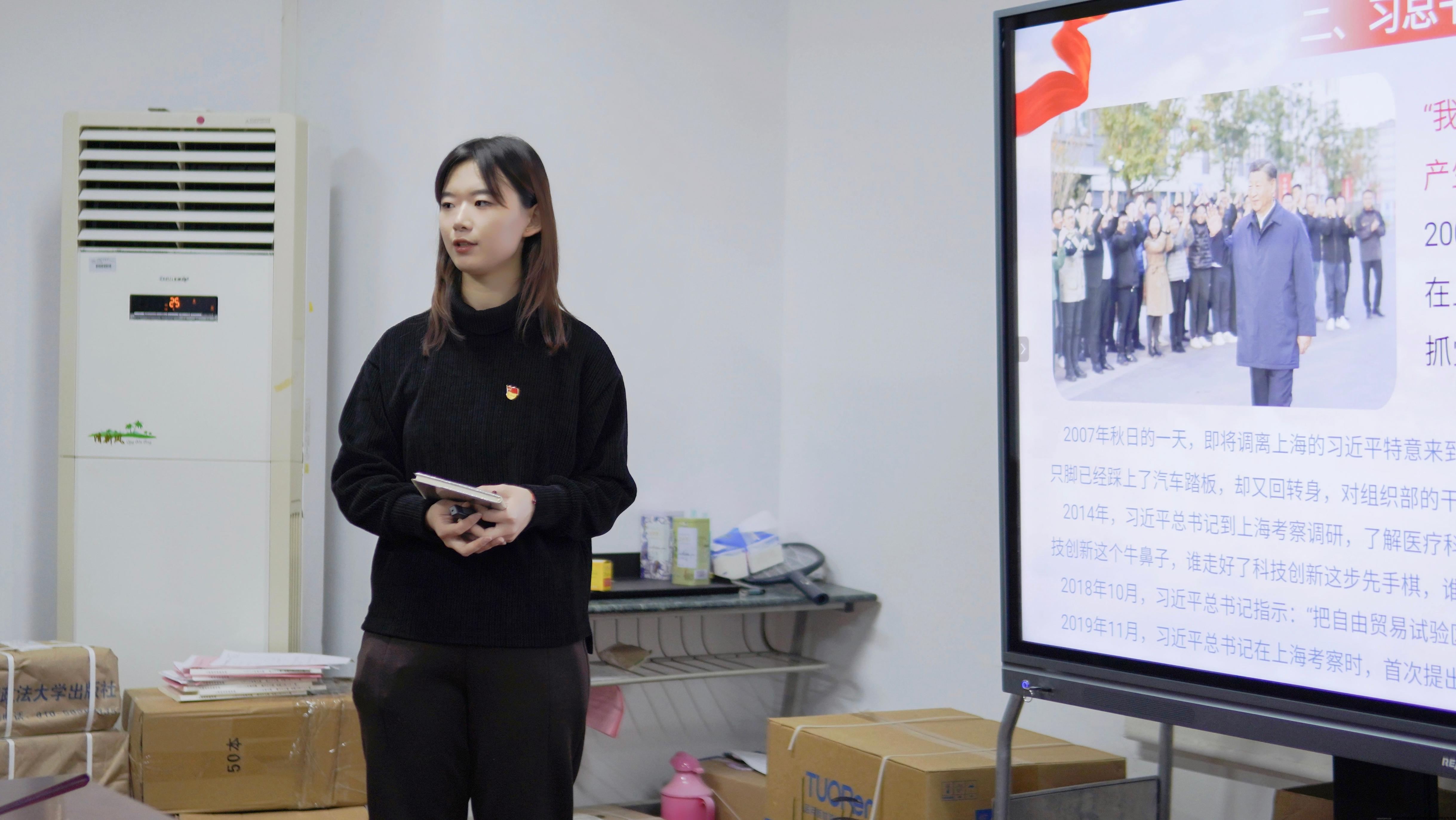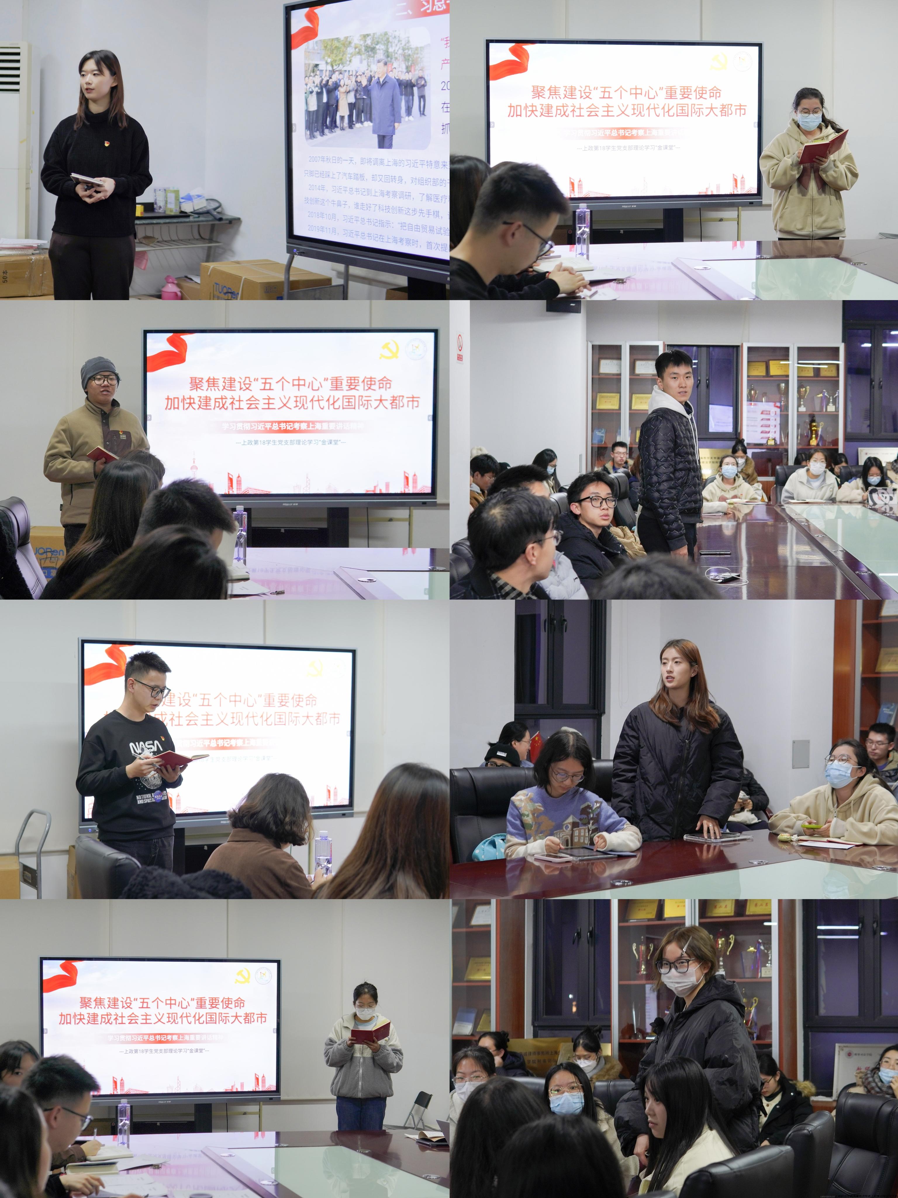 严正宇、杨慧、何璐、周硕同志分别就习总书记在上海考察讲话的原文进行学习分享。支部同学在交流发言中纷纷发表对于习近平总书记考察讲话的心得体会。