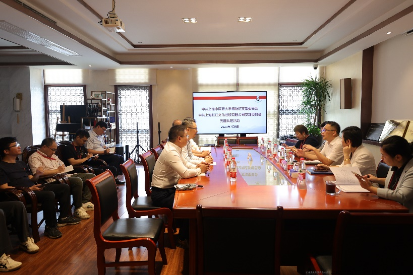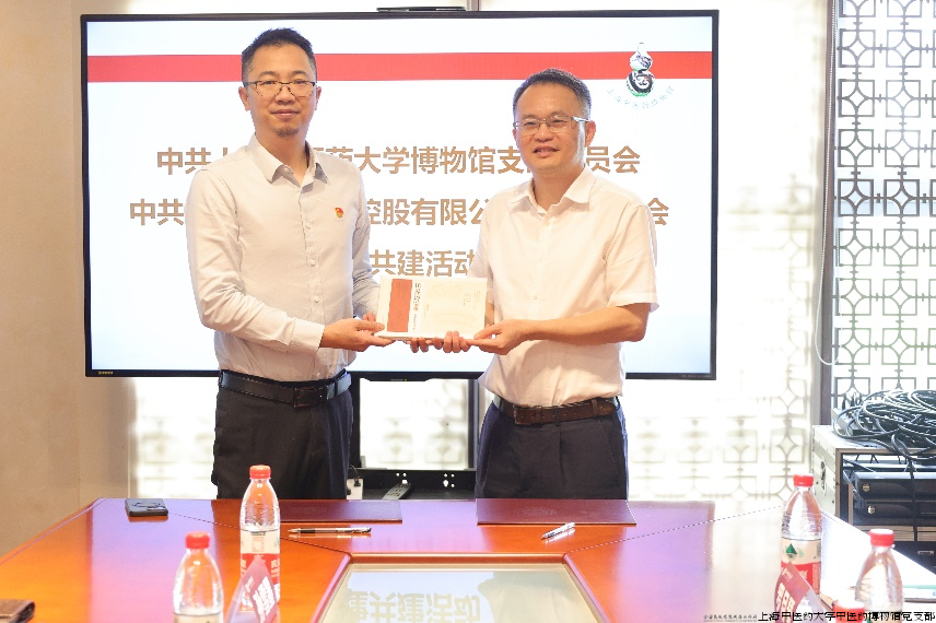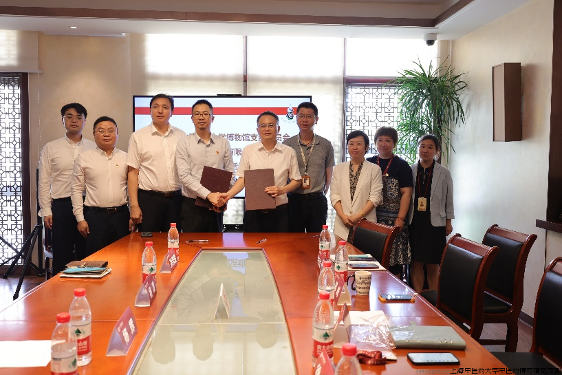 馆企携手共担使命,文化赋能共建共赢。为庆祝中国共产党成立103周年,进一步提升高校和企业党组织的组织力,在推动张江科学城建设进程中发挥区域内各类党组织的战斗堡垒作用,7月2日,中共上海中医药大学博物馆支部委员会与中共上海张江文化控股有限公司支部委员会党建共建活动在博物馆103会议室拉开序幕。上海张江(集团)有限公司党委办公室副主任杨建,上海张江文化控股有限公司党支部书记、副总经理杨辉,副总经理、支部委员张明泉和总经理助理孙雪墨等出席。上海中医药博物馆馆长兼党支部书记李赣,上海中医药大学党校副校长、党委组织员徐琳及博物馆全体党员参加活动。活动由上海中医药博物馆党支部副书记郭峰主持。