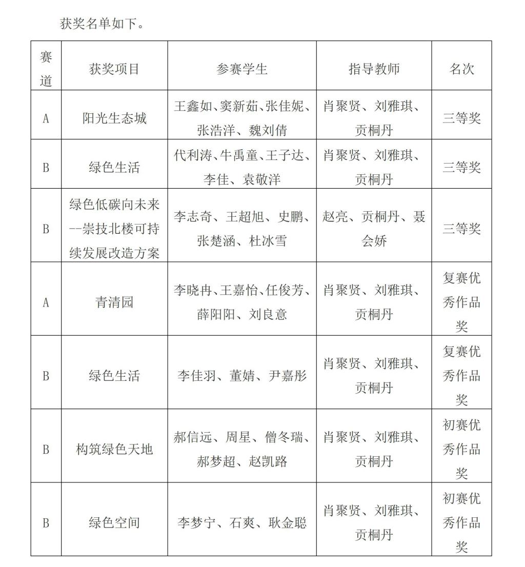 大赛由教育部建筑环境与能源应用工程专业教学指导委员会指导,中国城市科学研究会绿色建筑与节能专业委员会主办,华南理工大学、深圳大学等高校及行业龙头企业联合承办。高等院校绿色建筑技能大赛旨在鼓励大学生在绿色建筑领域进行创新和实践,为绿色建筑事业增添新的力量。第七届高等院校绿色建筑技能大赛于2024年9月12日正式启动,共吸引全国1475支高校团队参与角逐,现已顺利完成决赛阶段全部工作。赛事进程中,大赛组委会专业技术评审组对426项初赛晋级决赛的作品进行了多维度技术评审,经过严格筛选,推荐出杰出作品并经23位专家完成了线下集中评议,最终评选出优秀作品 333 项。所有获奖项目均由肖聚贤、刘雅琪、贡桐丹、赵亮、聂会娇等教师全程指导,团队成员从方案策划、技术攻坚到成果呈现,历经数月打磨,最终在全国 1475 支参赛团队中脱颖而出,充分体现了我院 “以赛促学、以赛促教” 的教学成果。