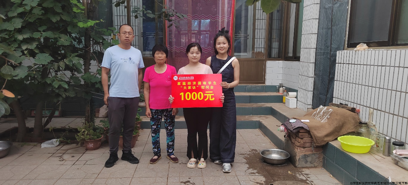 家访前,艺术设计系成立了暑期“大家访”工作小组,制定了详细的活动方案。家访过程中,工作小组前往了衡水市冀州区冀州镇双冢村、衡水市深州市北溪乡西绿村等村对3名家庭经济困难学生家庭进行走访并送去慰问金。辅导员老师在了解学生家庭的总体情况后,向学生家长简要介绍了学生在校期间的表现和学习、生活情况,并转达了学院对学生的关怀,宣传了党和国家以及学院的各项资助政策,并听取了家长对学院的期望和建议。同时,工作小组成员还从就业、未来规划等方面与同学和家长进行了细致的沟通和交流,勉励学生抓住在校学习的时间,努力提升自身思想政治素质和学业水平。对家长提出的实习安排、就业前景等问题,各位老师一一进行了详细的解答。