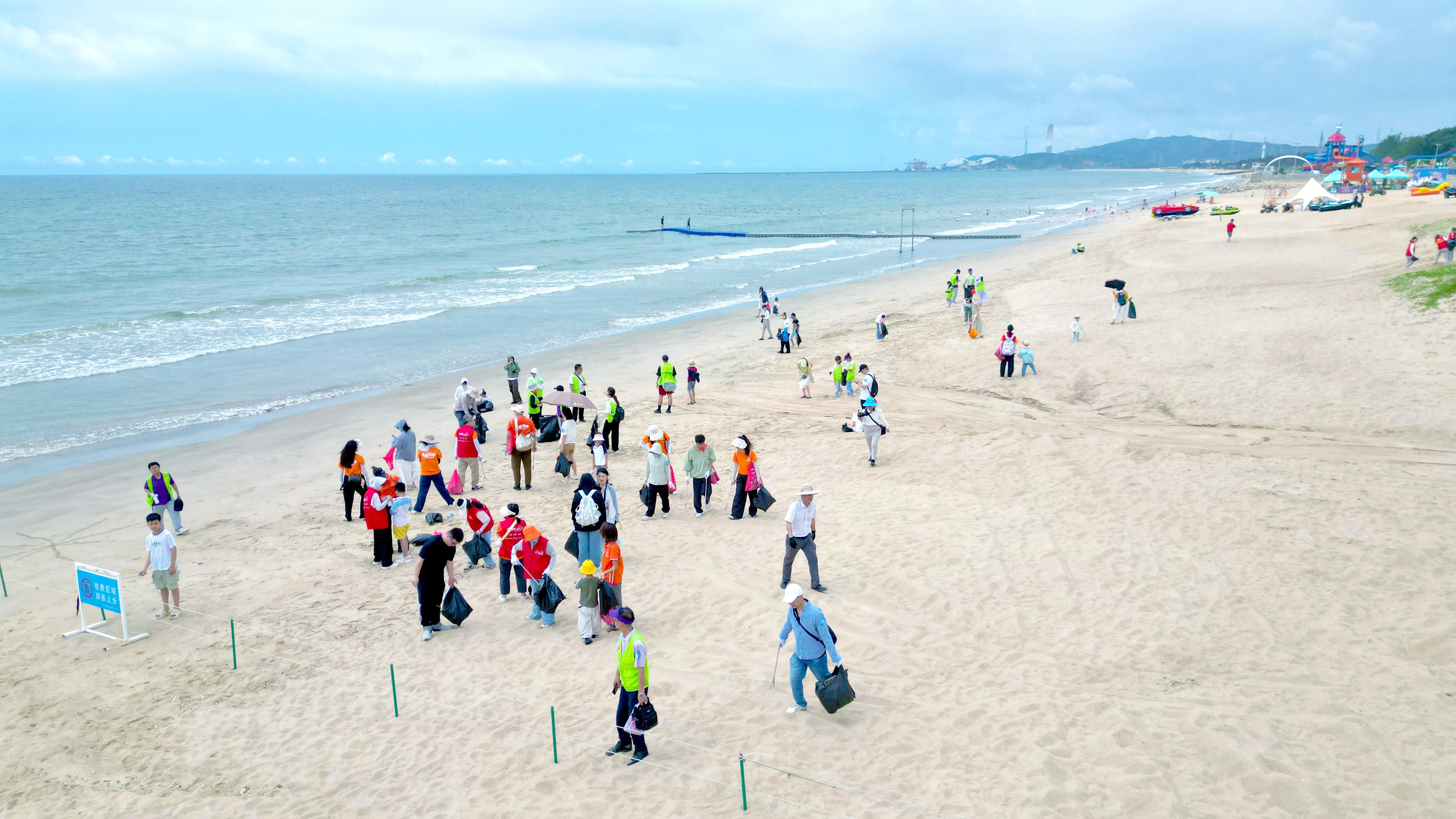 5月18日,课程组在濠江区中海黄金海岸文旅小镇举办2025年汕头市“海洋生态保护日”活动。活动由课程组发起,至今已连续举办12届。当天,活动在潮汕英歌舞的欢快鼓点和矫健舞姿中拉开帷幕。启动仪式上,来自濠江区总工会、濠江区自然资源局、汕头旅游文化协会、中海宏祥商业公司等单位的领导,带领现场民众进行护海宣誓。活动过程中,课程组通过知识科普、游戏互动等方式提高民众参与度,并呼吁全民参与海洋生态保护,推动文旅与生态融合发展,为当地海洋生态保护贡献力量。宣教活动结束后,课程组还邀请现场游客一起开展净滩活动,用行动践行誓言,让保护海洋从小事做起、从实事做起,推动生态保护从“活动式”向“常态化”转变。