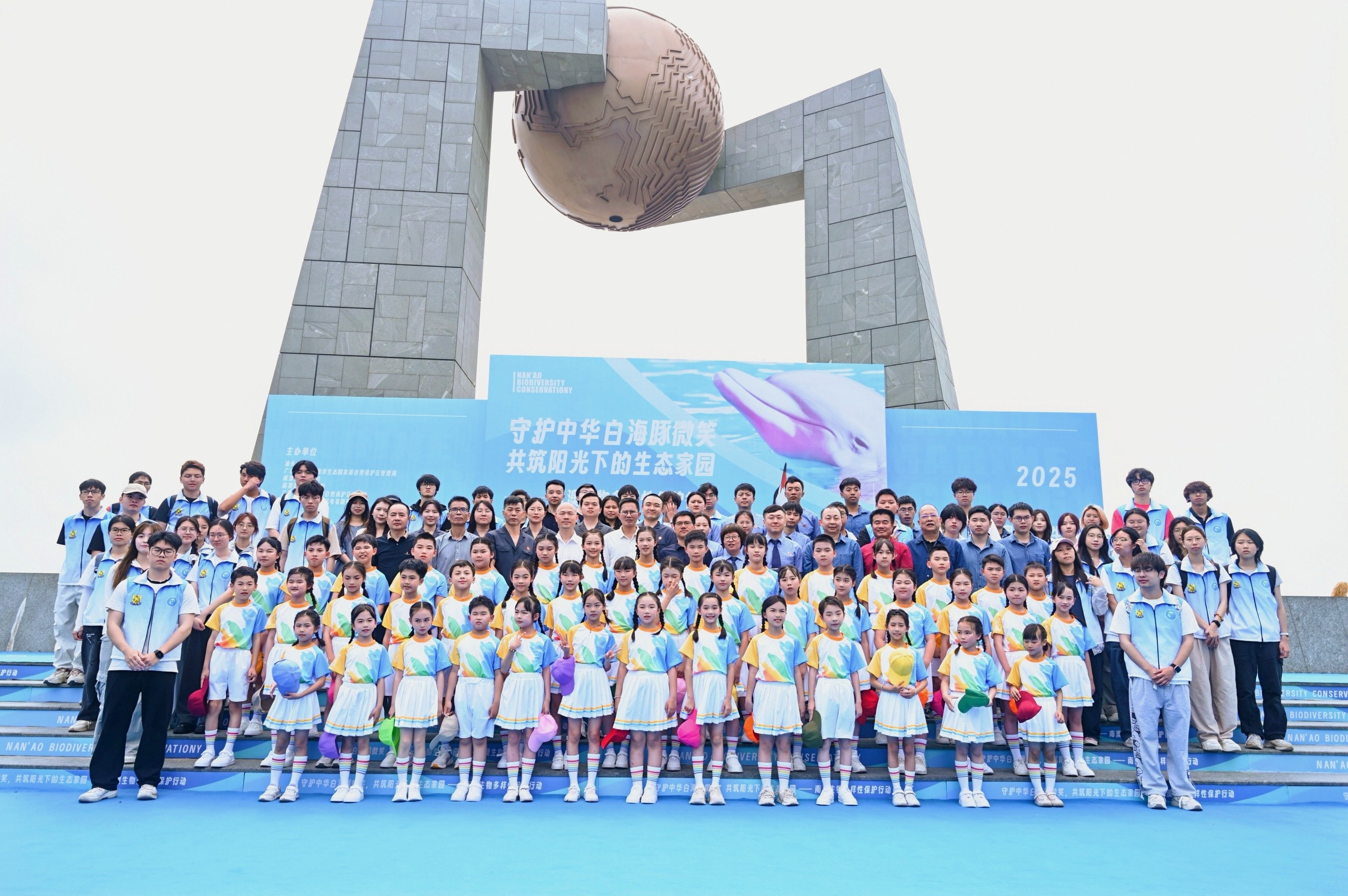 4月20日,伴随着初升的太阳,课程组作为承办方,联合广东南澎列岛海洋生态国家级自然保护区管理局、南澳县人民检察院、华能风电等六家政企相关单位在汕头市南澳岛开启了第八届“中华白海豚保护主题日”活动。课程组在政、企、社各界人士的热情支持下,在课程教学服务基地——汕头市外马路第三小学童声合唱团的歌声中,以科普宣教、生态实践等多元形式开展活动,旨在唤醒公众的海洋保护意识,搭建全民参与的生态守护平台。