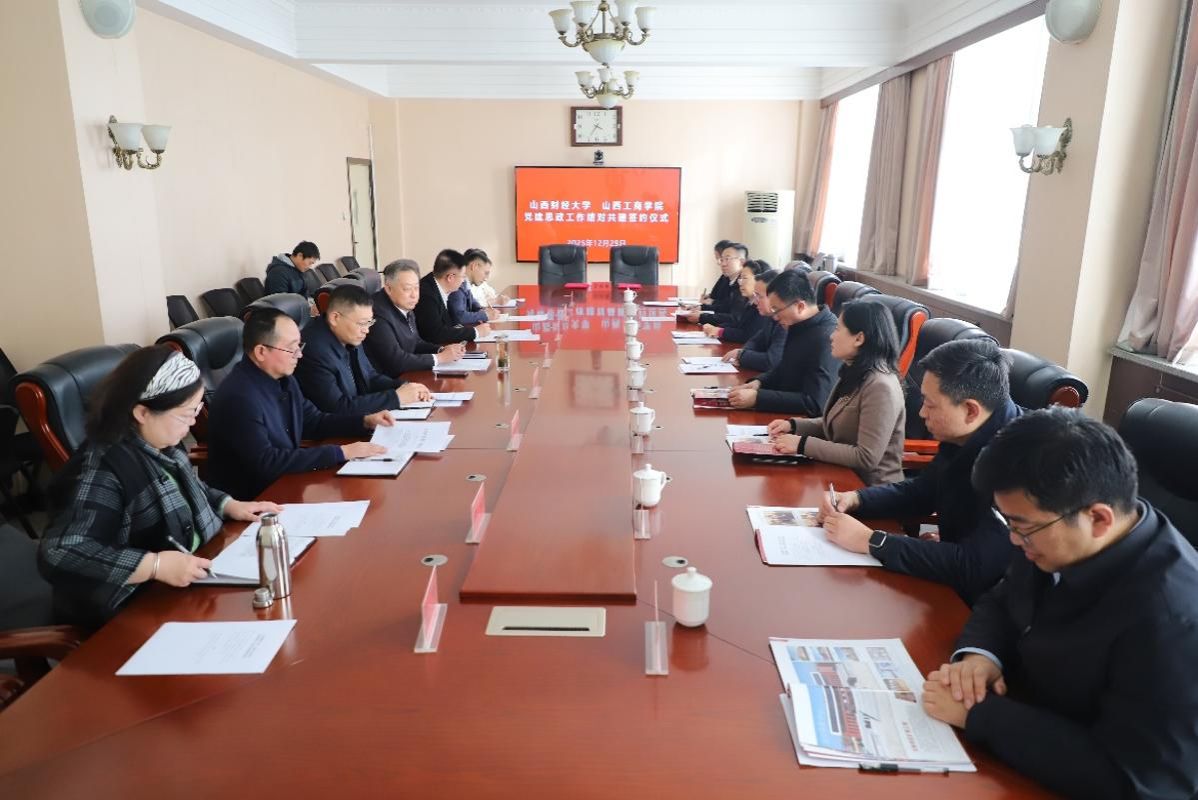 为深入贯彻落实中央关于加强民办学校党的建设工作的意见和第28次全国高校党的建设工作会议精神,根据省委教育工委关于开展公办高校与民办高校结对共建的工作部署,我校与山西工商学院签订党建和思想政治工作结对共建协议。12月29日下午,山西财经大学与山西工商学院党建和思想政治工作结对共建签约仪式在山西工商学院龙城校区举行。我校党委书记丁耀武,党委副书记寇福明,山西工商学院党委书记卢庆山,党委副书记张志伟等校领导出席仪式。