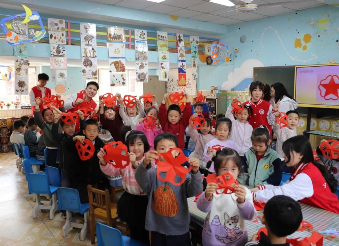 为深入贯彻落实两会精神,扎实推进思政教育一体化建设,健全学校家庭社会协同育人机制,3月10日下午,学生工作部晋华文化育人工作室、蔚然思想引领工作室组织“红色新青年领航工程”成员走进新秀幼儿园,开展红色文化宣讲活动。活动以讲述抗日小英雄王二小的感人事迹为主线,结合剪纸趣味互动,将红色思政教育融入幼儿启蒙阶段,让红色基因在童心深处生根发芽。