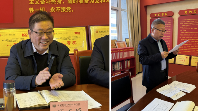 会议主持人数字商务学院党总支书记李福顺同志在总结发言中感谢学校党委的指导与支持,希望新一届支部委员会能够团结带领全体党员,聚焦“铸魂育人”与“赋能发展”目标,为学院高质量发展注入新动能。随后,新当选的支部委员随即召开第一次全体会议,选举产生支部书记并明确委员分工。