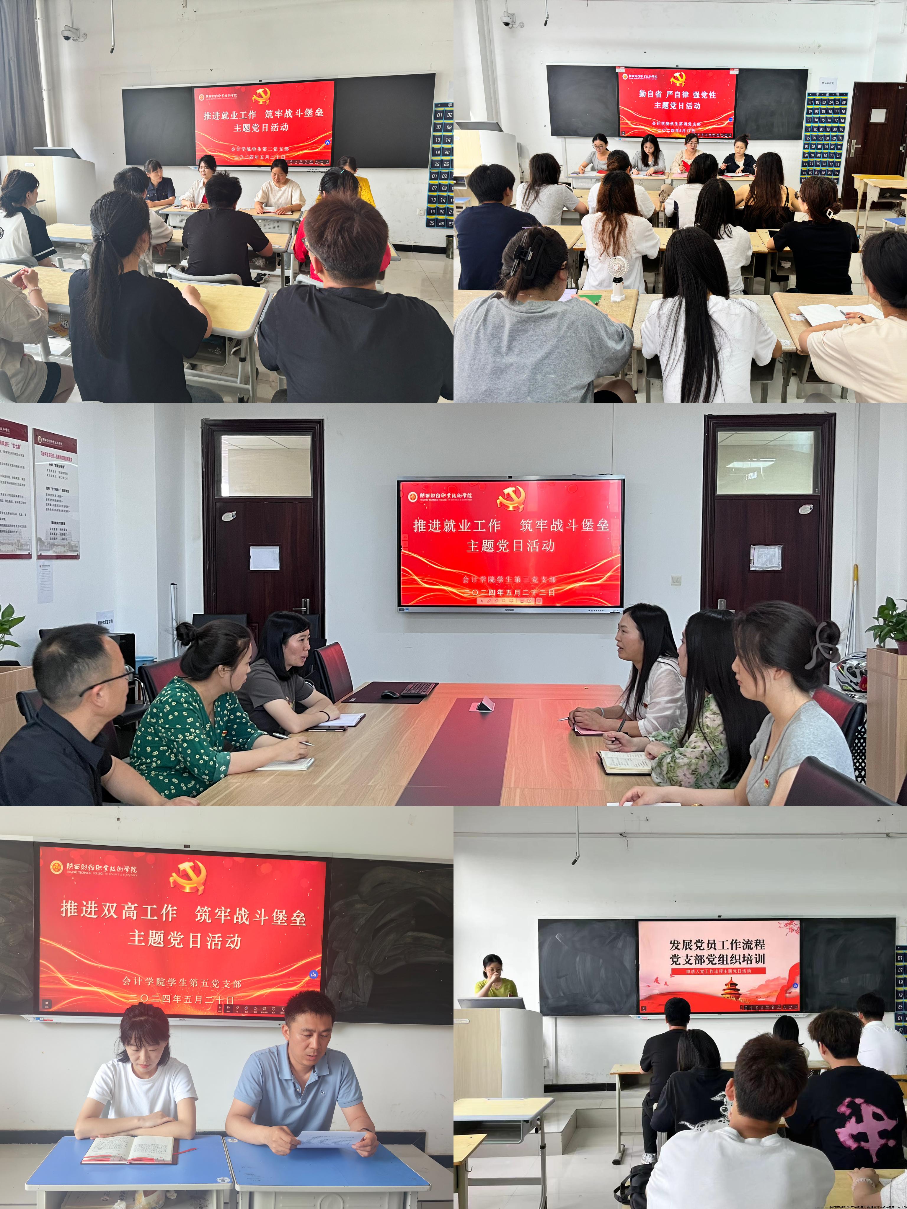 在全党开展党纪学习教育,是以习近平同志为核心的党中央为加强党的纪律建设、推动全面从严治党向纵深发展作出的重要举措。会计学院各党支部分别围绕党纪学习教育与学院重点工作的共融共促开展了主题党日活动。学生第二党支部、学生第三党支部、教师第六党支部开展了“推进就业工作,筑牢战斗堡垒”主题党日活动,学生第五党支部、教师第二党支部、教师第三党支部、教师第五党支部开展了“推进双高工作,筑牢战斗堡垒”主题党日活动,学生第四党支部开展了“勤自省 严自律 强党性”主题党日活动,教师第四党支部开展“提升教学质量,筑牢战斗堡垒”主题党日活动,学生第六党支部开展了“学习申请入党工作流程”主题党日活动。明确每位党员要将党纪法规融入日常工作中,在实践中不断加深对党纪法规的理解和把握,自觉将党纪学习教育成果转化为推动学院干事创业的具体成效。随后,各支部通过小组讨论的形式深刻剖析了违纪违法典型案例中党员干部逐渐走向贪污腐化、违法违纪的思想根源,使党员们对违反党纪的严重后果有了更直观地认识,引导全体党员受警醒、明底线、知敬畏,确保党规党纪入脑入心。