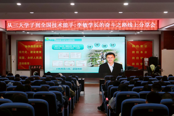 报告厅内,师生齐聚一堂,全程认真观看、仔细聆听。李敏以“登专业高峰,创无限可能”为题,结合自己扎根生产一线十余年的成长经历,用朴实生动的语言,分享了从一名普通技术工人逐步成长为行业技术能手的奋斗历程。