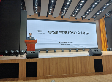 为统筹推进2026届毕业生就业工作,引导毕业生准确把握就业形势,明确职业发展方向,2025年9月22日,三峡大学电气与新能源学院在生材楼1号报告厅召开2026届毕业生研究生就业动员大会。电气与新能源学院党委书记甘行元、材料与化工学院党委书记朱红军、电气与新能源学院副院长熊奇,2026届毕业班辅导员、全体研究生毕业生参加会议。本次会议由电气与新能源学院研究生管理办公室主任袁波主持。
