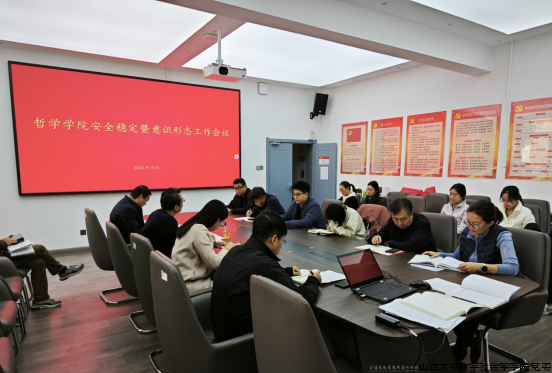 10月24日,哲学学院党委在学院会议室召开理论学习中心组(扩大)会议。学院党委委员、班子成员、科级干部、工会主席及师生党支部书记参加会议。学院党委书记韩树林主持会议。