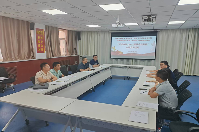 在庆祝中国共产党成立104周年、喜迎“七一”建党节之际,为深入贯彻落实党的二十大精神,扎实推进学习贯彻习近平新时代中国特色社会主义思想主题教育走深走实,深入贯彻中央八项规定精神学习教育,化学工程学院应化教师党支部支委一行赴第二批“全国党建工作样板支部”——西安科技大学化学与化工学院化工系教工党支部调研交流,并联合开展了“忆党史迎七一,担使命启新程”主题党日活动。化学工程学院党总支书记孟龙、应化教师党支部全体委员参加了本次活动。
