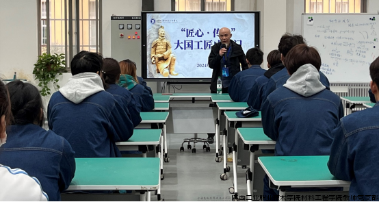为大力弘扬劳模精神、劳动精神、工匠精神,充分发挥劳动模范和先进工作者的激励带动作用,激发广大师生学习先进、追赶先进和争当先进的热情,激励青年人走技能成才、技能报国之路。2024年10月22日下午,邀请“大国工匠”、秦始皇帝陵博物院文物修复师马宇大师在材料智能成型工程技术中心开展“大国工匠话初心”活动。材料工程学院师生参加了本次活动,活动由材料学院党总支书记郝平主持。
