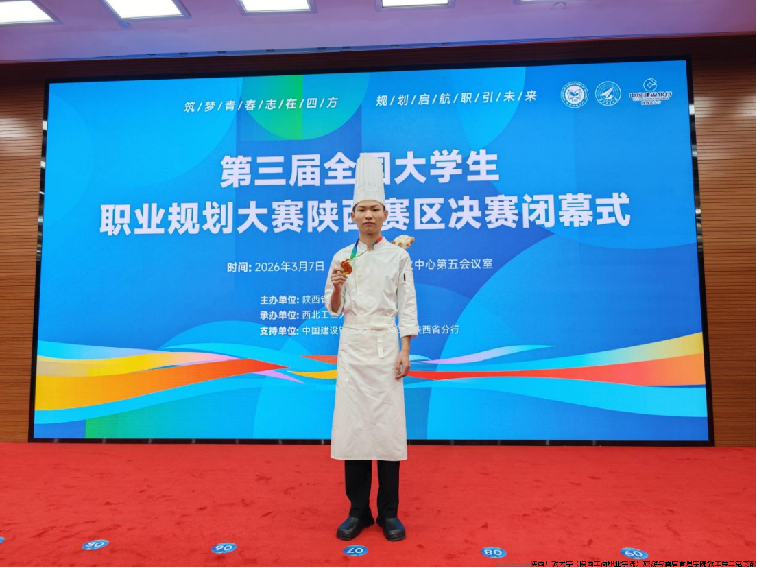 2026年3月6日,第三届全国大学生职业规划大赛陕西省赛决赛在西安航空职业技术学院圆满落幕。陕西工商职业学院旅游与酒店管理学院2025级烹饪工艺与营养专业学生李子阳,在旅游与酒店管理学院党员教师常程的精心指导下,凭借清晰的职业规划、扎实的专业功底与鲜明的陕菜传承定位,斩获职教组成长赛道省级金奖,以党建引领专业发展的实际成效交出亮眼答卷。
