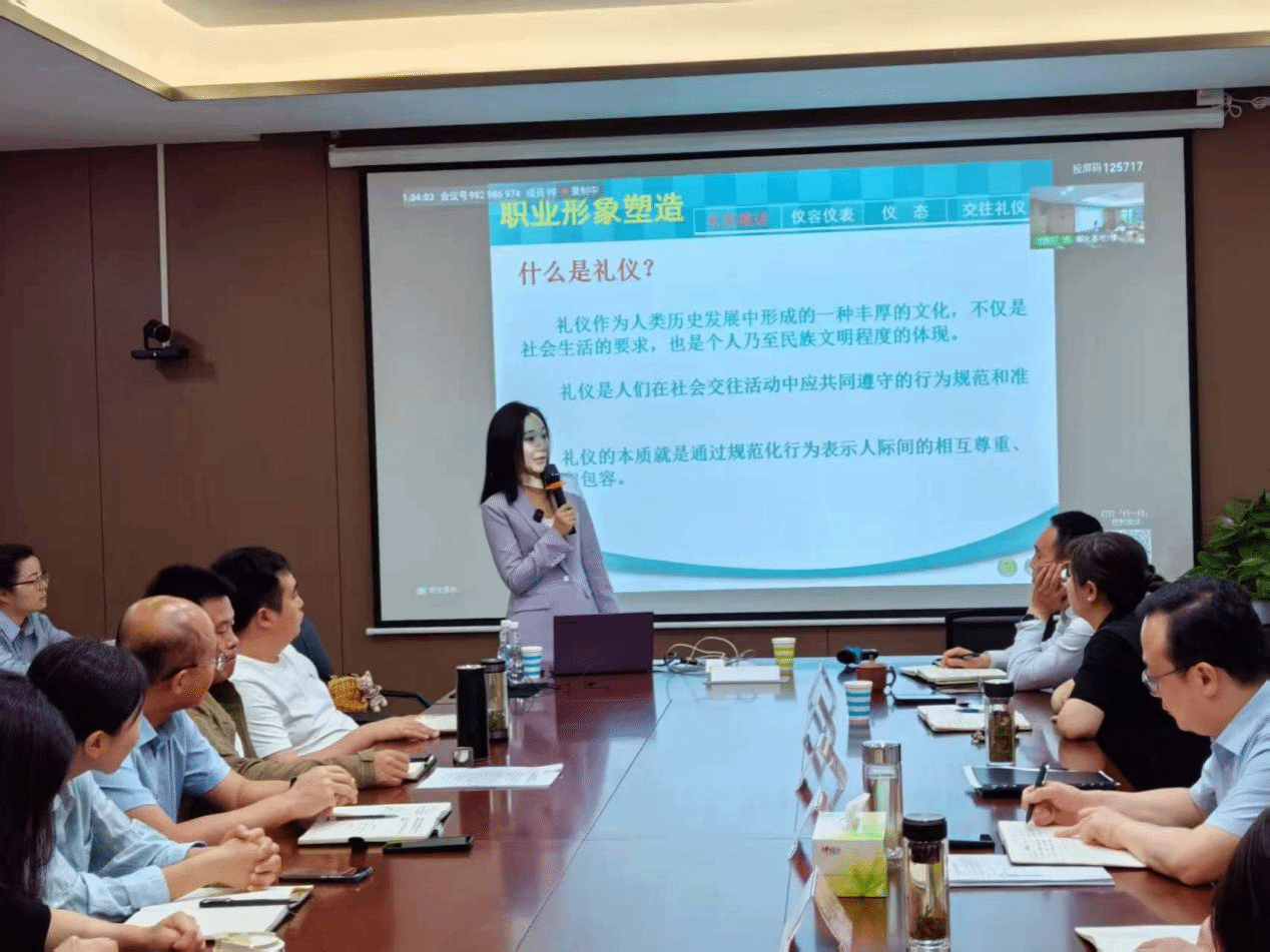 2025年4月21日上午,文化传媒系教师在陕西燃气产业研发与孵化基地成功开展了一场主题为“礼仪卓越之旅,提升服务品质”的专题培训。本次培训聚焦于陕西燃气集团交通能源发展有限公司员工的职业形象塑造和场景化礼仪指导,旨在通过专业的礼仪培训,提升该公司员工的服务水平和职业素养,进一步优化企业服务形象。文化传媒系凭借丰富的礼仪培训经验和专业的师资力量,受邀为该公司提供此次礼仪培训。本次礼仪培训任务由播音与主持教研室、演讲与口才教研室共同承担,由杨琦老师担任主讲,教研室其他教师组成培训项目组。