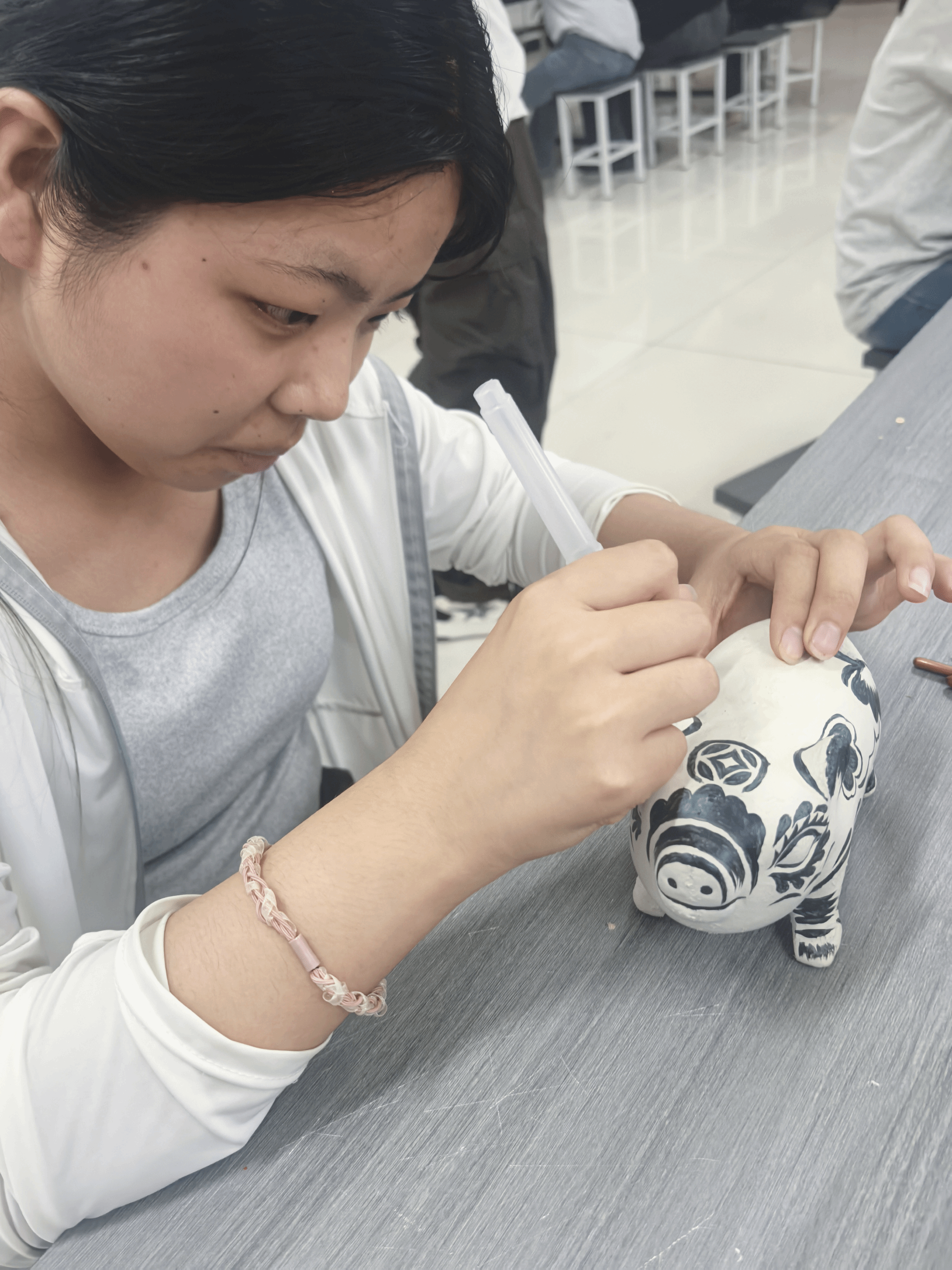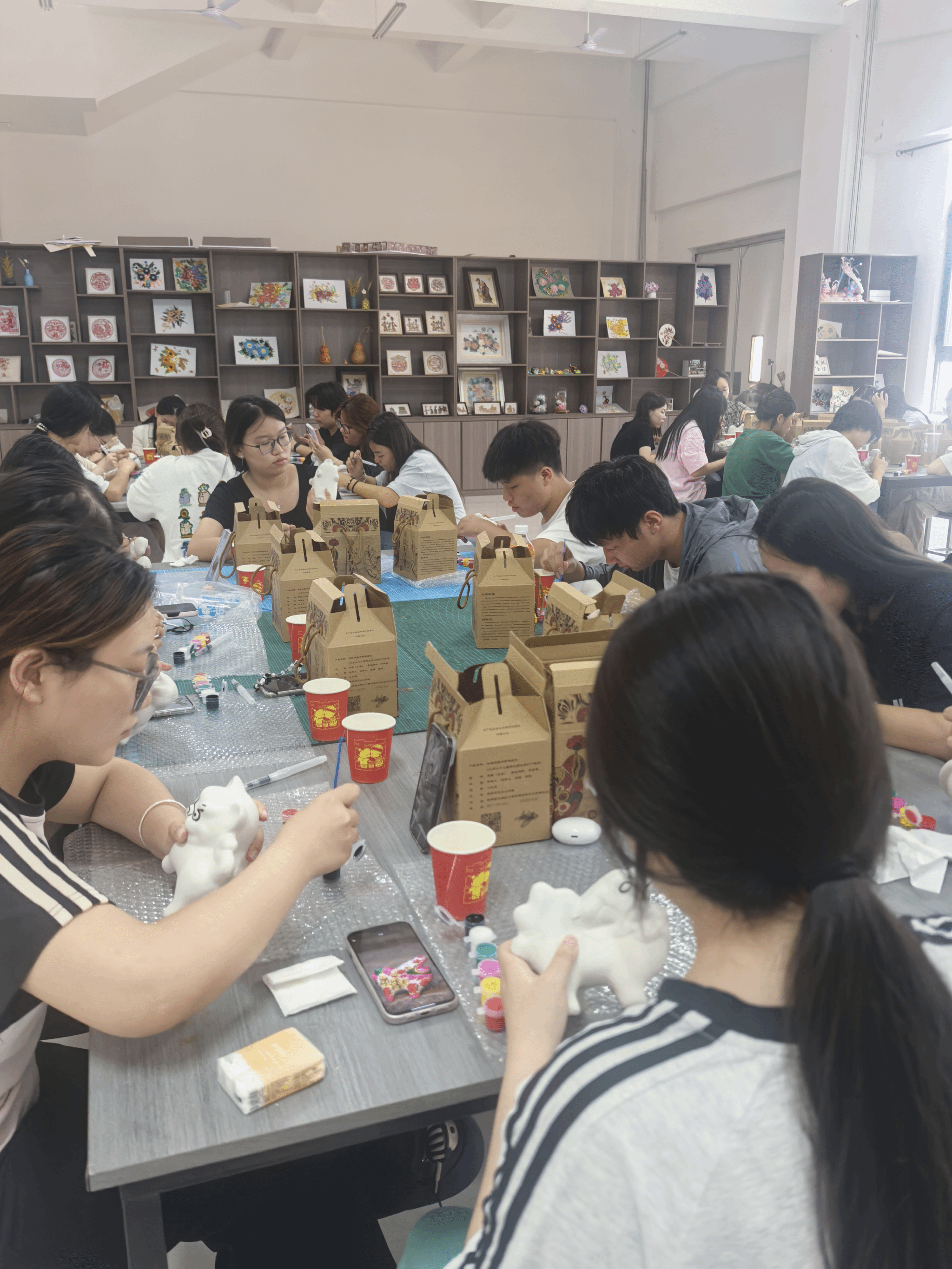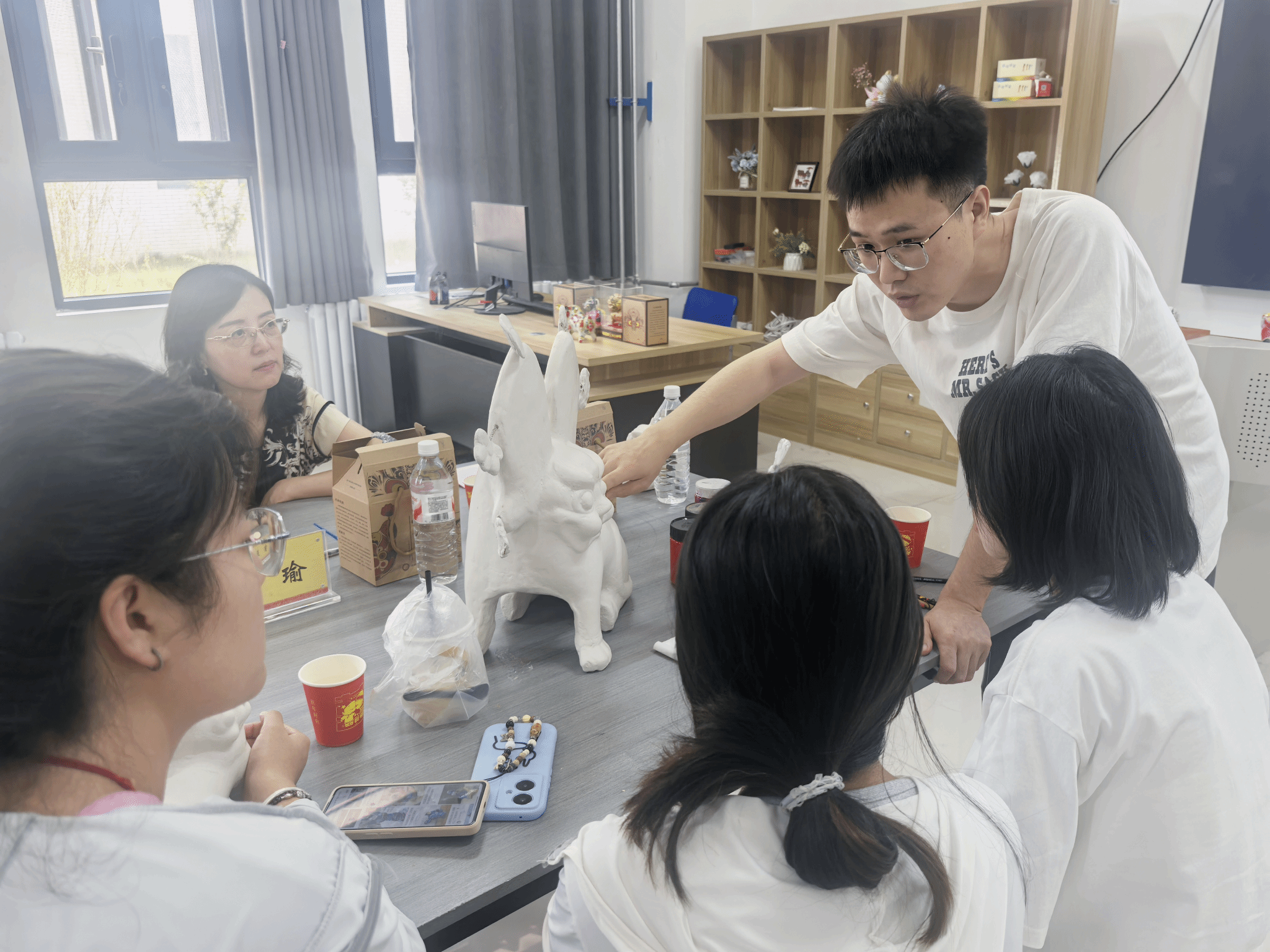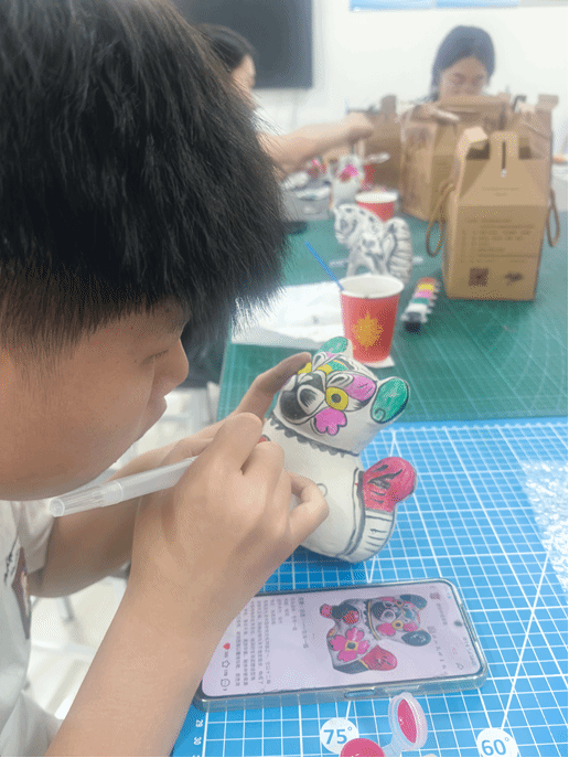 专访活动结束后,胡锦伟老师重返活动现场,继续指导学生完成作品。在师生近三个小时的专注创作中,憨态可掬的生肖摆件渐次成型,还有融入现代创意的新造型。胡老师以兼具专业深度与人文温度的点评将活动推向高潮。光影交错间,陶土的质朴与师生创作的热忱相映成趣,为这场跨越传统与创新的艺术实践画上了温润的句点。