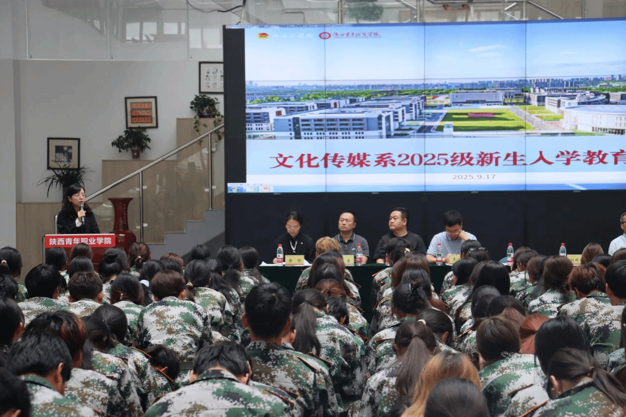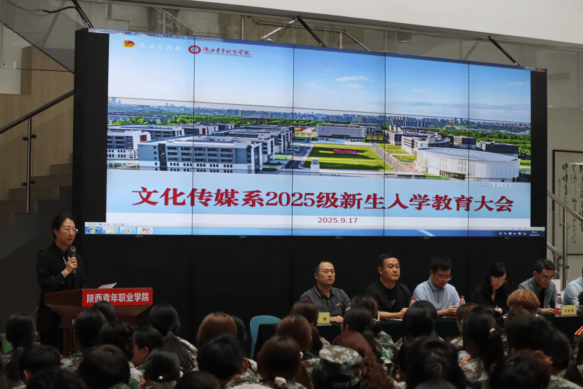 金秋九月,微风送爽。9 月 17 日下午,文化传媒系 2025 级新生入学教育在图书馆二楼大厅举行,490 名新同学齐聚校园,开启大学生涯“第一课”。大会旨在帮助新生快速融入校园、明晰专业方向,分为集体入学教育与专业教育两大阶段。文化传媒系党总支书记王瑜、图书馆副馆长刘延民、系党总支副书记唐娜、教学工作负责人杜小峰,各专业带头人及全体教职员工、军训团教官出席。大会由文化传媒系党总支副书记唐娜主持。