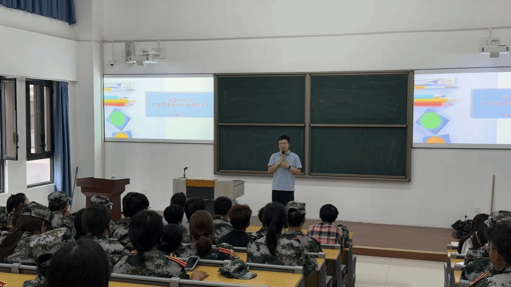 广告艺术设计专业新生入学教育大会由青年教师冯小茸主持,广告艺术设计专业带头人、教研室主任李卓介绍陕西省广告行业发展现状,重点介绍我院广告艺术设计专业的发展脉络、专业特色、培养目标、课程设置、教学环境、师资情况等;专业教师王晓平做了专业课程学法介绍,并对新生适应大学阶段专业学习、校园生活提出了建议。