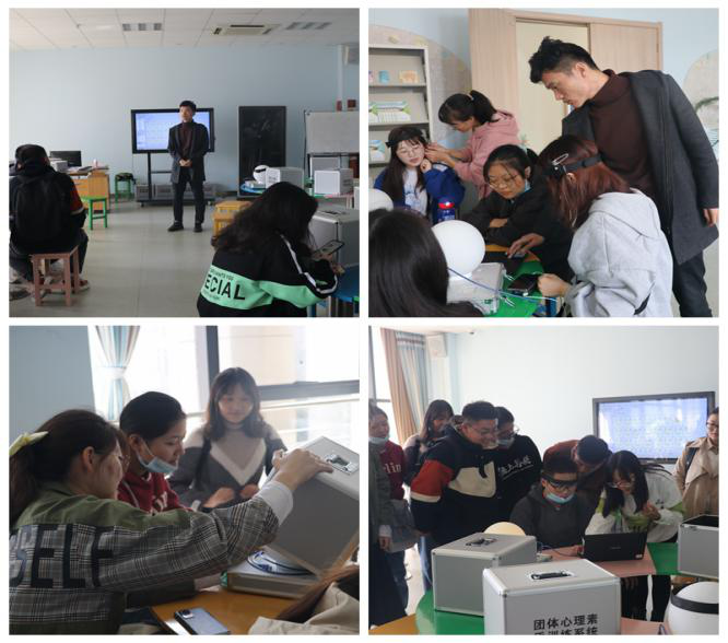 培训会开始前,全体心理委员在校心理健康教育(咨询)指导中心杨栋老师的带领下参观了校心理中心长安校区“心地绿洲”咨询点。杨老师向同学们简要介绍了中心的基本情况,随后他带领大家参观体验各项设备,如脑波仪、智能宣泄仪、VR心理放松体验系统等。