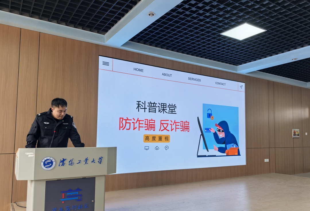 随后,我校公安处副处长杨大富对近期大学生电信诈骗案件情况进行了通报,再次提醒同学们在生活中要时刻保持高度警惕,杜绝贪图小便宜的心理,严格保护个人信息安全,遇到可疑情况时及时与老师、同学或警方取得联系。