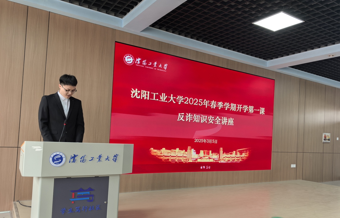 为切实推进平安校园建设,构建学生反诈工作的新格局,3月5日,学校举办2025年春季学期开学第一课——反诈知识安全讲座。学生处处长兼党委学生工作部部长李青山、公安处副处长杨大富、学生处副处长张琼琼、以及各学院辅导员代表参与本次活动,活动特别邀请到沈阳市驻校专员关恕宽、经济开发区分局民警赵帅等公安干警。
