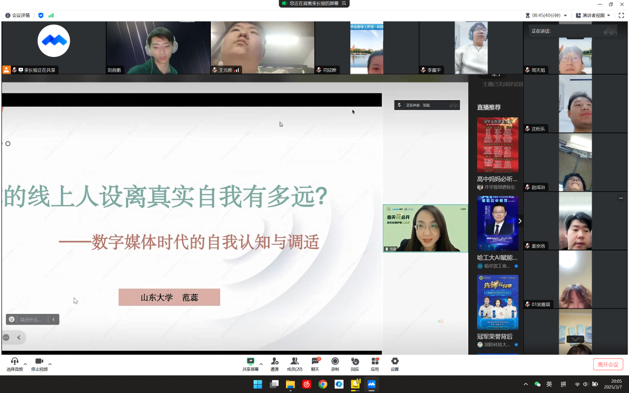 3月7日,学校组织全校学生观看由中国教育发展战略学会心理教育专业委员会指导、我校联合发起的“百校心理护航公益课”,课程主题为《你的线上人设离真实自我有多远》,山东大学范蕊老师主讲。