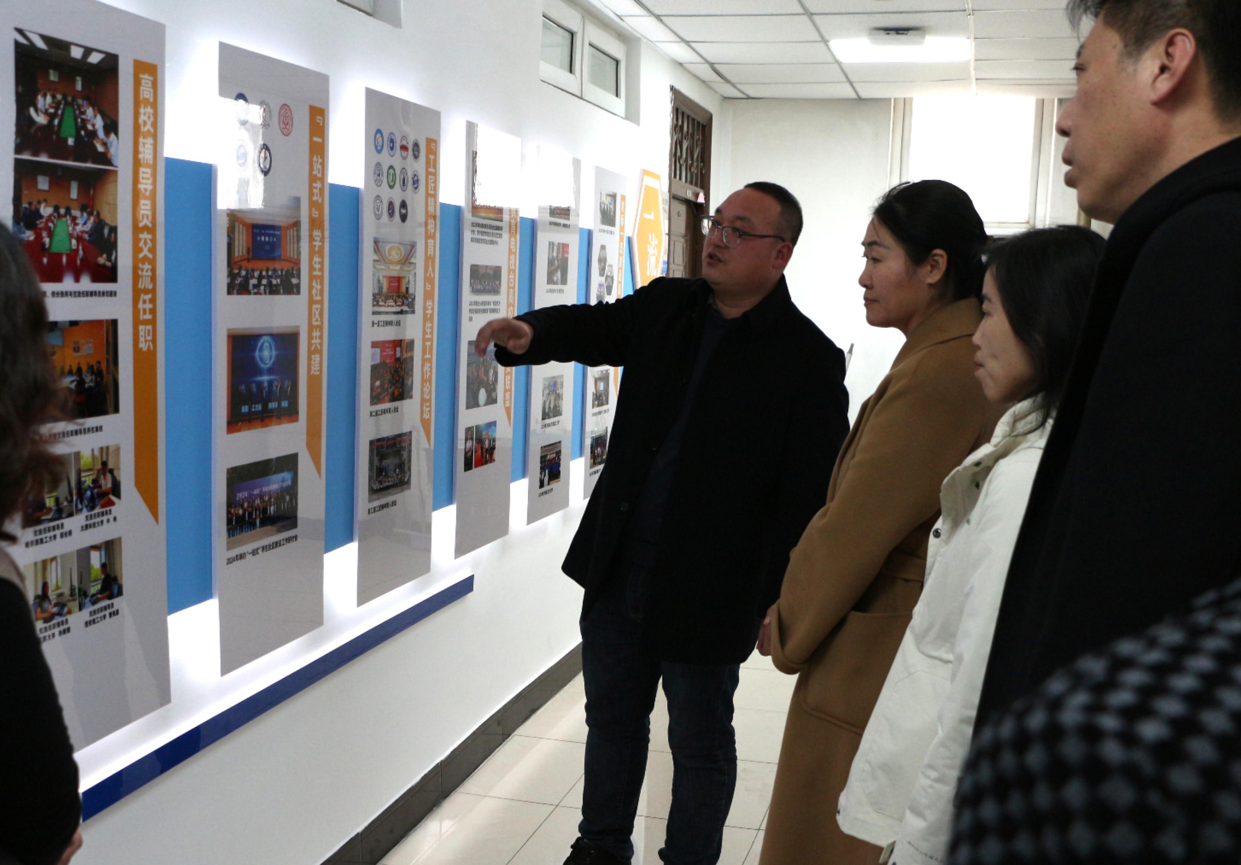 会后,盖守双一行实地调研了我校“信仰行路人”——教育部高校辅导员名师工作室、“一站式”学生笃行社区和社区主题教育展馆。在调研过程中,双方对校园文化建设、育人路径及学生培养等方面进行了深入交流。