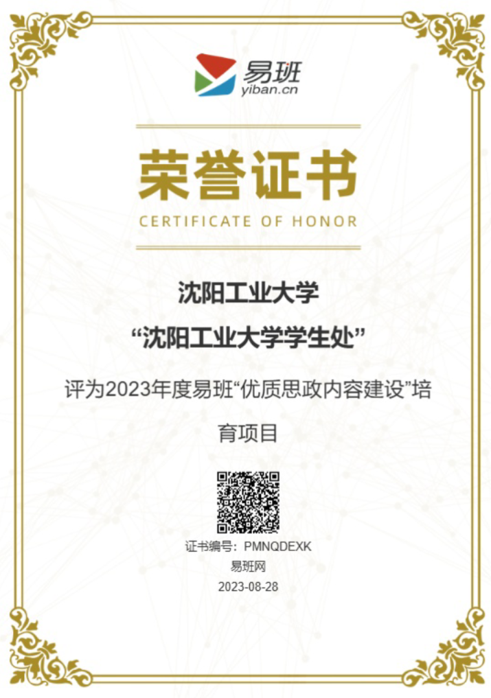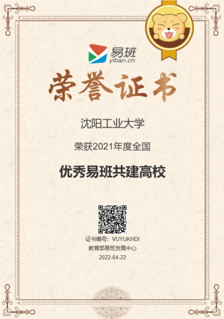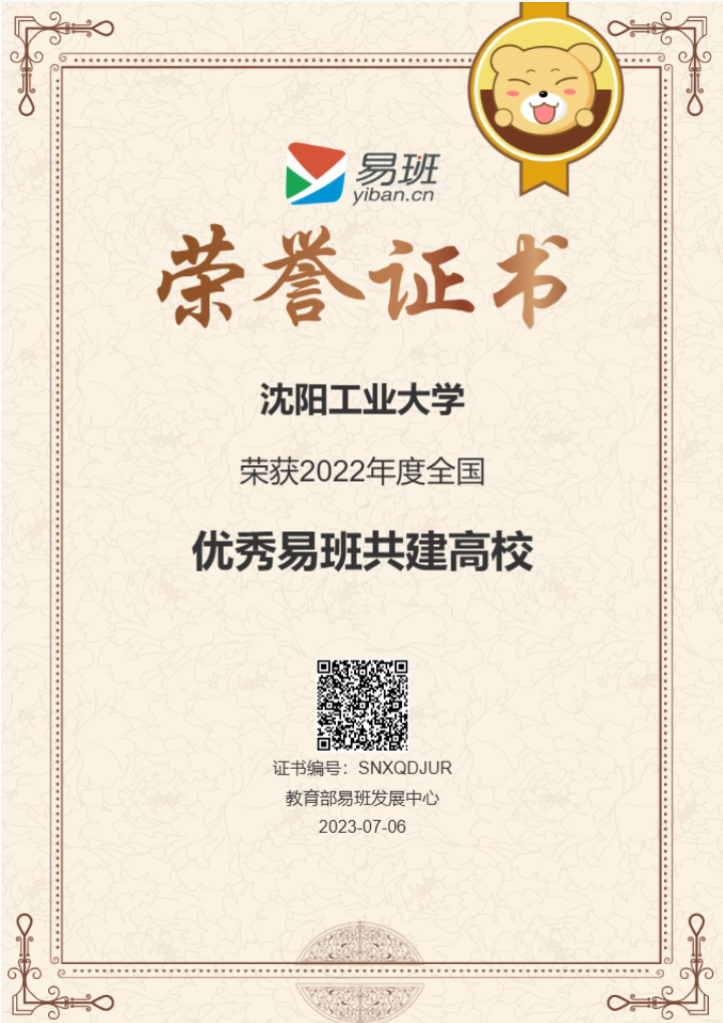 近年来,学校蝉联“全国优秀易班共建高校”“辽宁省优秀易班共建高校”,学校易班发展中心运营的“沈阳工业大学学生处”微信公众号连续两年获批年度全国易班“优质思政内容建设”培育项目并成功立项。