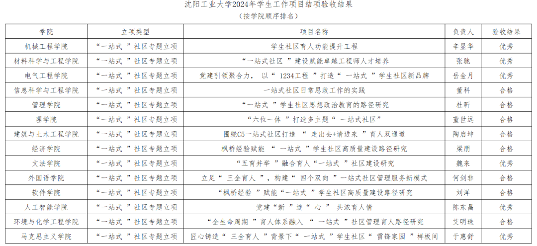 经过紧张答辩和热烈交流,最终28个项目全部通过验收,其中12个项目被确定为优秀项目。学生工作立项是沈阳工业大学“一站式”学生笃行社区建设的深度探索,也是“一流两赛三赋能四推选”辅导员队伍建设体系的重要组成部分。