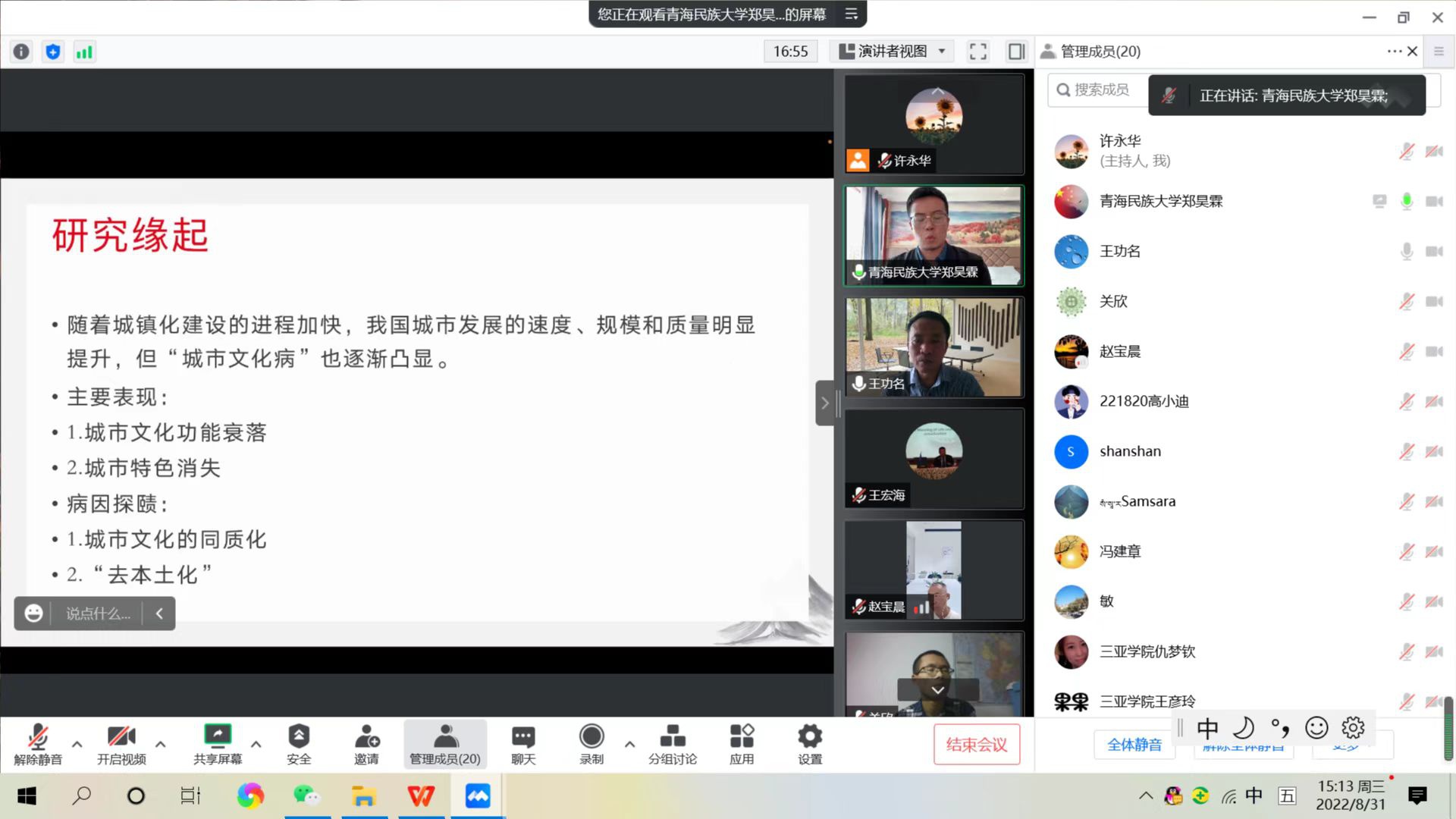 2022年8月31日下午3点,根据马克思主义学院暑期科研工作安排举办了“文明以止 文以化成——琼文化与城市治理”学术沙龙。该次学术活动采用校际、院际学术共同体线上交流的形式开展,有效地克服了疫情的影响,节省了科研成本,提高了学术交流效率。