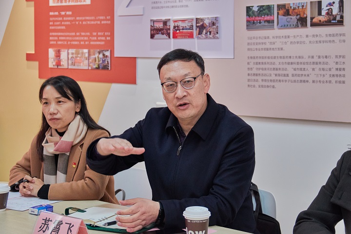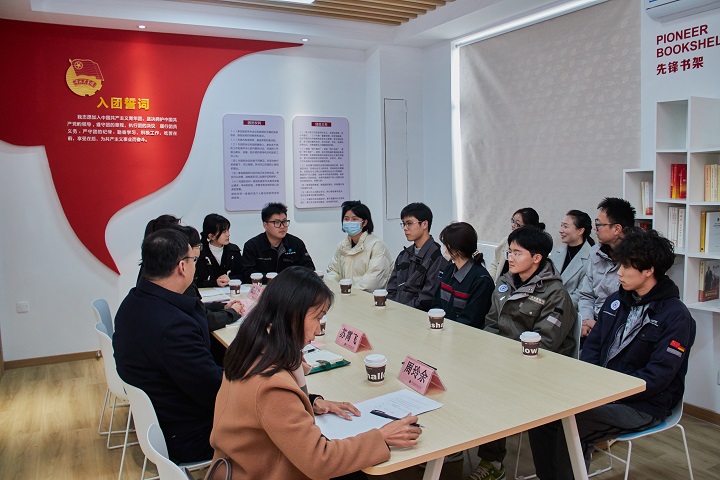 12月26日下午,“书记面对面”暨书记调研基层党团组织座谈会在紫薇社区举行。学院党委书记苏霄飞与来自亿迈齿轮、舍弗勒、通快、宝得流体、慕贝尔等项目班学生代表、本科班学生代表进行了面对面的交流互动。学院组织部、团委,智能制造学院相关负责人和部分师生代表参加座谈,会议由智能制造学院党总支书记周玲余主持。