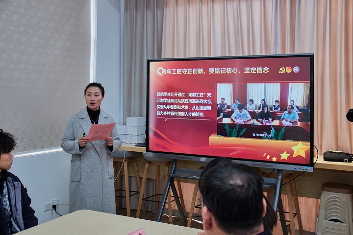 会议上还进行了微党课领学、就业优势调研报告展示,学生党员代表分享了参与创新创业大赛和戏剧展演的经历,为同学们呈现了精彩的“我的三年大学生活”。苏霄飞勉励同学们一要坚定技能报国信念,将小我融入大我,扎根技术一线,投身制造强国建设;二要坚定职业发展信心,广泛学习,不断积累,在职业道路上厚积薄发;三要明晰职业奋斗目标,把握技能人才成长规律,不断拓宽知识边界,有效应对未知挑战;四要加强自身能力建设,广泛阅读,强化语言表达能力锻炼,为职业发展奠定基础。