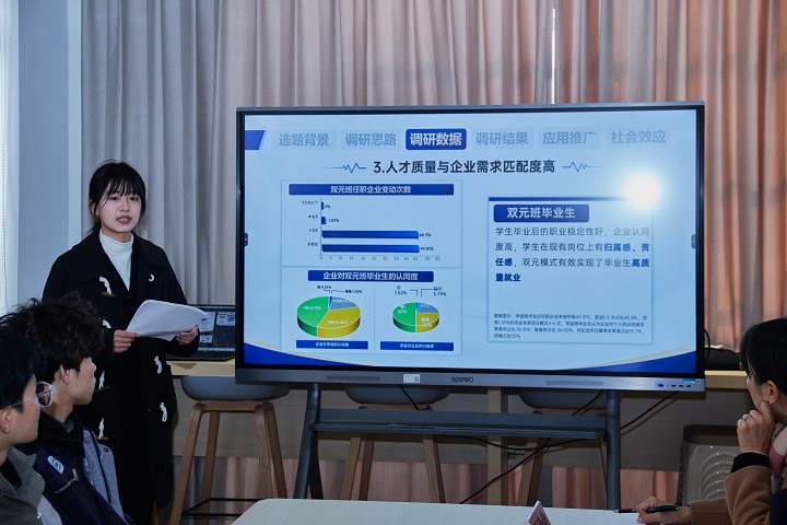 学生代表围绕项目班学生特有的理论和实践课程相结合的学习模式等方面进行了分享和交流。学生表示,在项目班里培训内容“很有意思”,“搓铁”“钻孔”等实践操作与专业学习相辅相成、相得益彰,同时对未来编程、调试等更高阶的学习充满期待。
