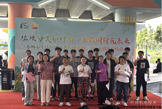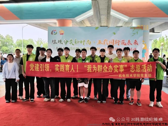 2025年5月25日,机电技术学院党支部组织师生志愿者,走进昆山市巴城镇临湖社区开展党建引领,实践育人——“我为群众办实事”志愿活动,参与苏州市垃圾分类管理条例实施五周年宣传活动。