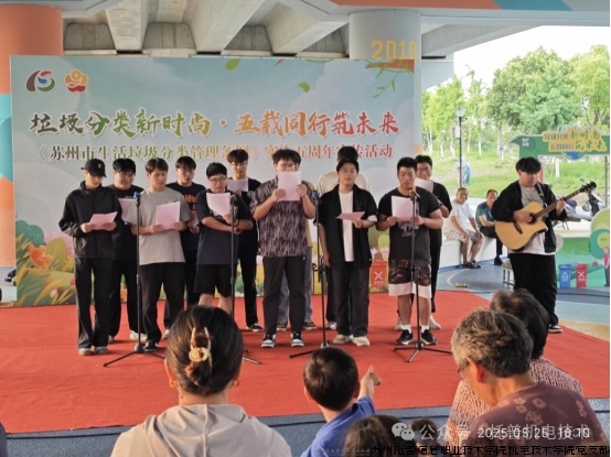 活动伊始,学生志愿者唱响环保主题歌曲,用歌声传递绿色生活理念,普及垃圾分类,关注节能减排,倡导低碳生活。激昂的旋律与朗朗上口的歌词,不仅点燃了现场氛围,更让“节约资源、保护环境”的意识深入人心。