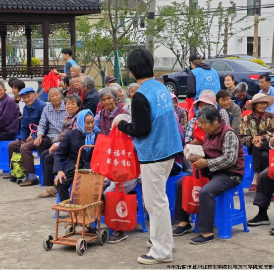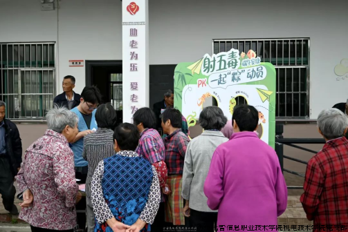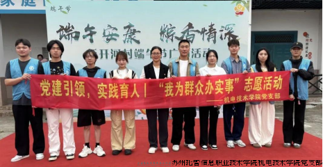 2025年5月28日,在端午佳节来临之际,机电技术学院党支部组织师生志愿者,走进昆山市巴城镇临湖社区,开展“粽叶飘香传党情,校社联动暖民心”我为群众办实事系列志愿活动。与居民一同包粽子、话家常。糯米裹着赤诚心,粽叶卷起鱼水情,在传承民俗文化中深化校社共建,传递节日温暖,以暖心实践彰显党员担当。