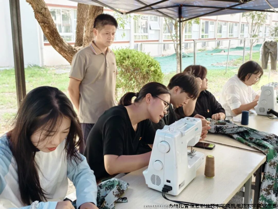 2025年9月11日,在苏州托普信息职业技术学院9栋学生宿舍楼下,一抹亮眼的“红色”再次温暖了军训中的新生们——机电技术学院党支部组织党员同志设立的“红色缝补”服务点如期“开张”,这也是学院连续多年在军训期间为学生开展的贴心服务活动。