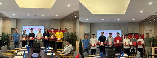韩旭和赵毅强为毕业生党员赠送政治生日贺卡与毕业赠礼,希望同志们在新的征途上永葆入党初心,牢记使命担当。
