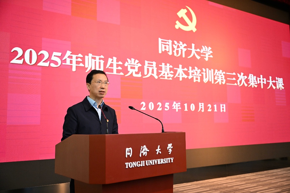 10月21日下午,同济大学举办2025年师生党员基本培训第三次集中大课,集中学习教育部党组书记、部长怀进鹏主讲的“深入学习贯彻习近平总书记关于教育的重要论述 以教育强国支撑引领中国式现代化”视频课程。