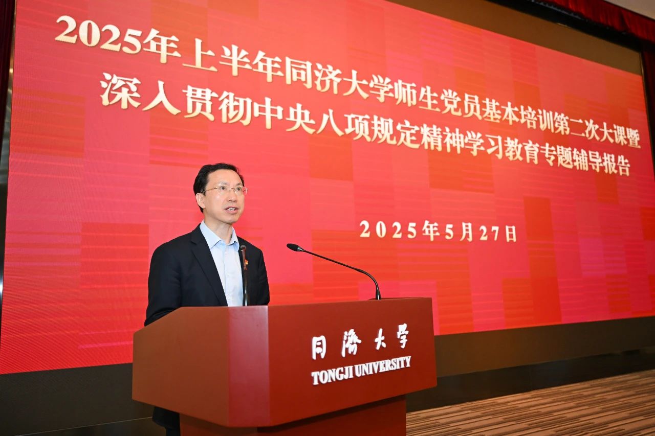 5月27日下午,同济大学举办2025年师生党员教育培训第二次集中大课暨深入贯彻中央八项规定精神学习教育专题辅导报告会,集中学习中央党校(国家行政学院)党的建设教研部副主任祝灵君同志主讲的“学习贯彻习近平总书记关于加强党的作风建设的重要论述和中央八项规定精神”视频课程。