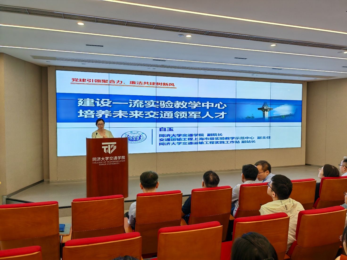 交通学院副院长白玉以“建设一流实验教学中心 培养未来交通领军人才”为题,详细介绍了交通运输工程上海市级实验教学示范中心在党建业务融合方面的成果与经验,深度感谢财务处在示范中心建设过程中给予的支持,为学院的实验教学与科研工作提供了坚实保障。