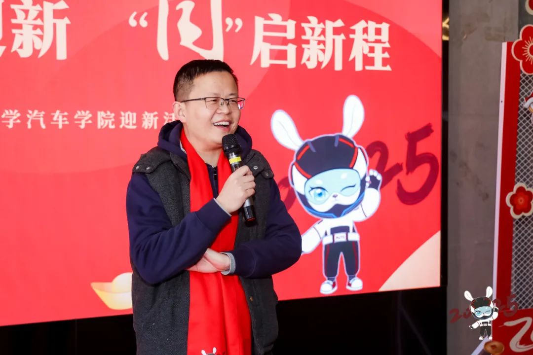 汽车学院党委委员、院长协理黄岩军作为教师代表向在场师生致以新年的问候和诚挚祝福,他表示汽车学院在过去一年克服了种种困难,在矢志奋斗中取得了喜人的成绩,并祝愿大家在新的一年蛇舞新春开新篇,锐意进取启新程!