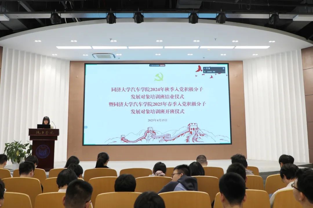 2025年4月15日,同济大学汽车学院2024年秋季入党积极分子、发展对象分党校结业仪式暨2025年春季入党积极分子、发展对象分党校开班仪式于新能源汽车工程中心二楼报告厅顺利举行。汽车学院党委副书记、分党校副校长葛畅,学生工作办公室副主任杨正宇,组织员张骏尧,2024年秋季及2025年春季入党积极分子与发展对象培训班学员出席仪式。本次仪式由汽车学院兼职辅导员覃静主持。