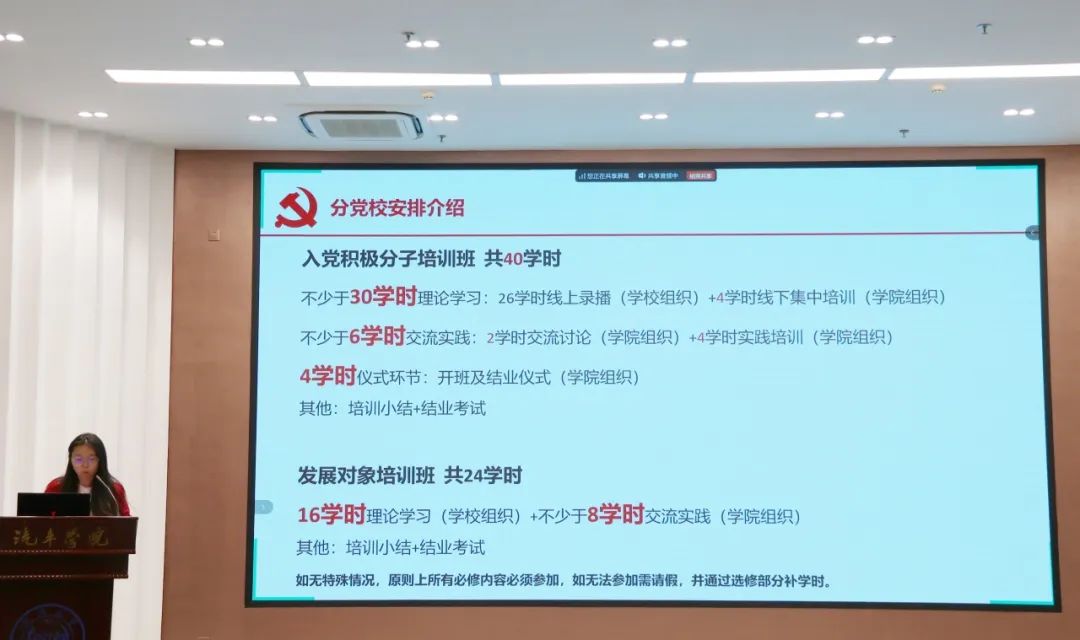杨正宇介绍了分党校课程的主要安排,她强调了入党积极分子与发展对象参与理论学习和实践活动的重要意义,希望全体学员严肃认真地完成分党校的各项课程,不断提升自身的理论水平和实践能力。