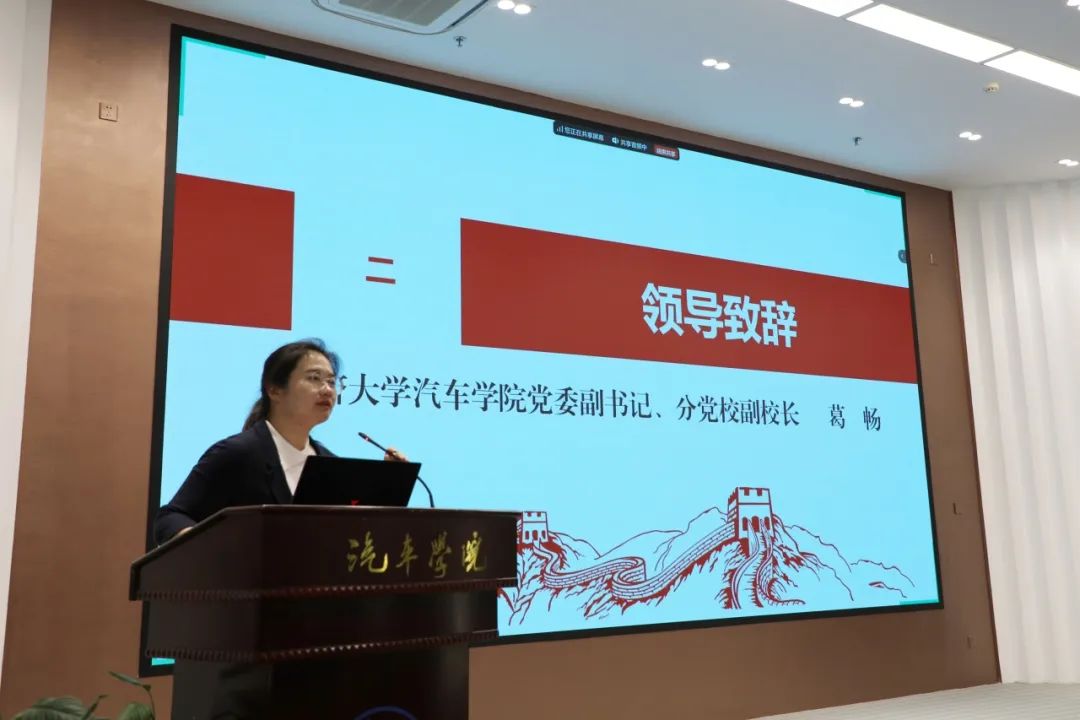 仪式伊始,葛畅代表学院党委向顺利结业的学员表示热烈祝贺,向新一批党校学员表示诚挚欢迎。她在讲话中指出,本次培训班是学院贯彻落实党的二十大和全国教育大会精神、扎实推进青年学生理想信念教育的重要举措。她向学员们提出三点希望:一是要提高思想认识,深刻理解党校培训的重要意义,端正学习态度,明确努力方向,用先进理论武装头脑、指导实践。二是勇担重任,切实践行两会中大力发展智能网联新能源汽车等新兴产业的重要论述,贡献新时代同济汽车人的力量。三是严格要求,扎实认真完成各项培训任务,做到学有所思、学有所成、学以致用,切实提升政治素养和理论水平。