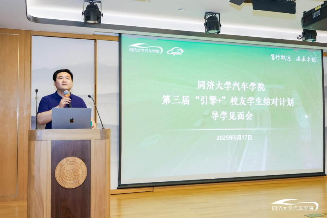 活动伊始,张立军首先代表学院向与会校友导师及学工团队致谢。他指出结对计划对培育学生综合素养的重要作用,期待能继续借校友经验为学员成长赋能。谈及产业变革,他在阐释中国汽车产业“总体声势喜人,局部形成胜势”这一发展态势的同时,也强调需正视与日德车企在规模、利润等方面的差距。针对学员发展,他提出“学业-就业-创业-事业”一体化的发展模式,倡导突破“唯学历、唯就业”局限,树立长期职业规划意识。他以“引擎”为喻,寄语学员做到“向前”“向上”和“向下”引擎,一要永葆创新动力,勇闯技术无人区;二要锚定卓越标准,攀登专业制高点;三要深植文化根基,在开放实践中锻造核心竞争力,实现从知识积累到价值创造的跨越式发展。