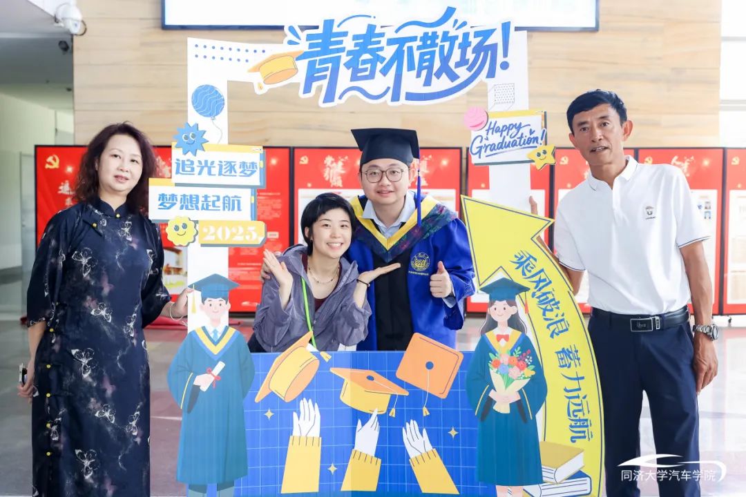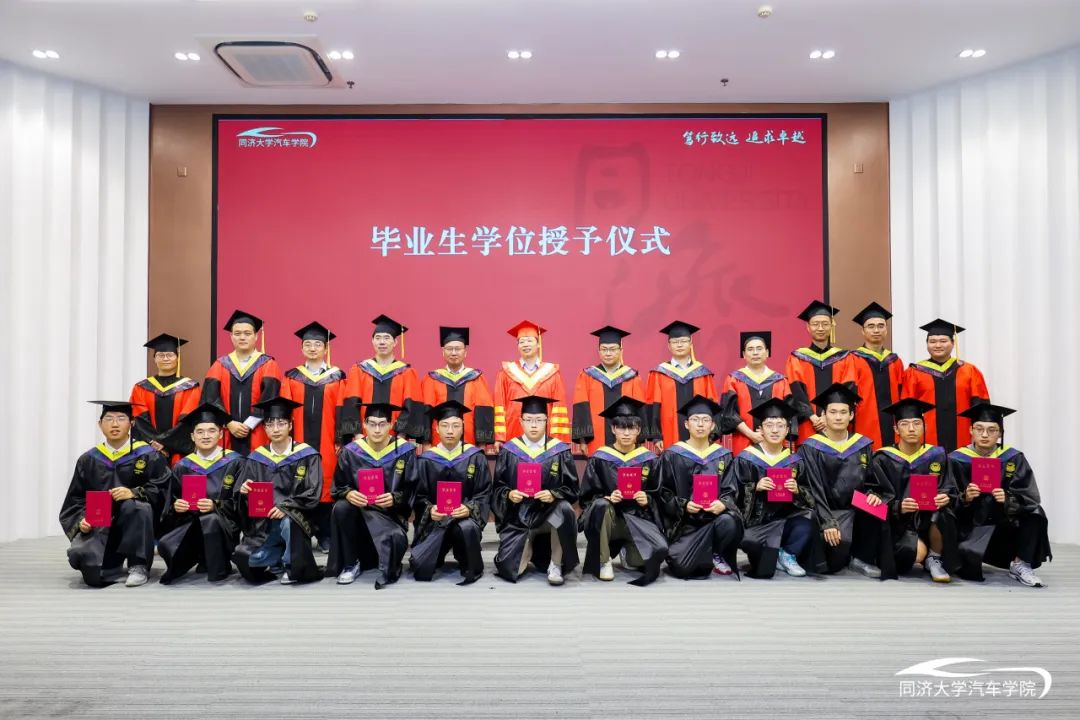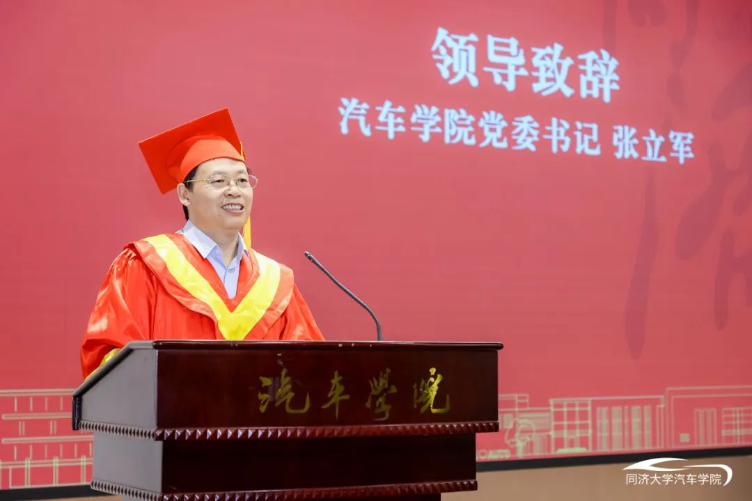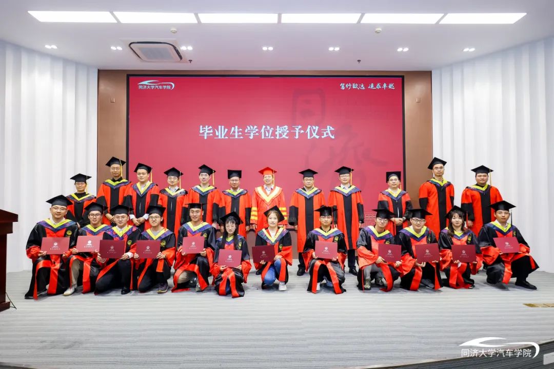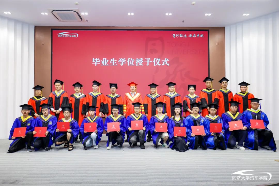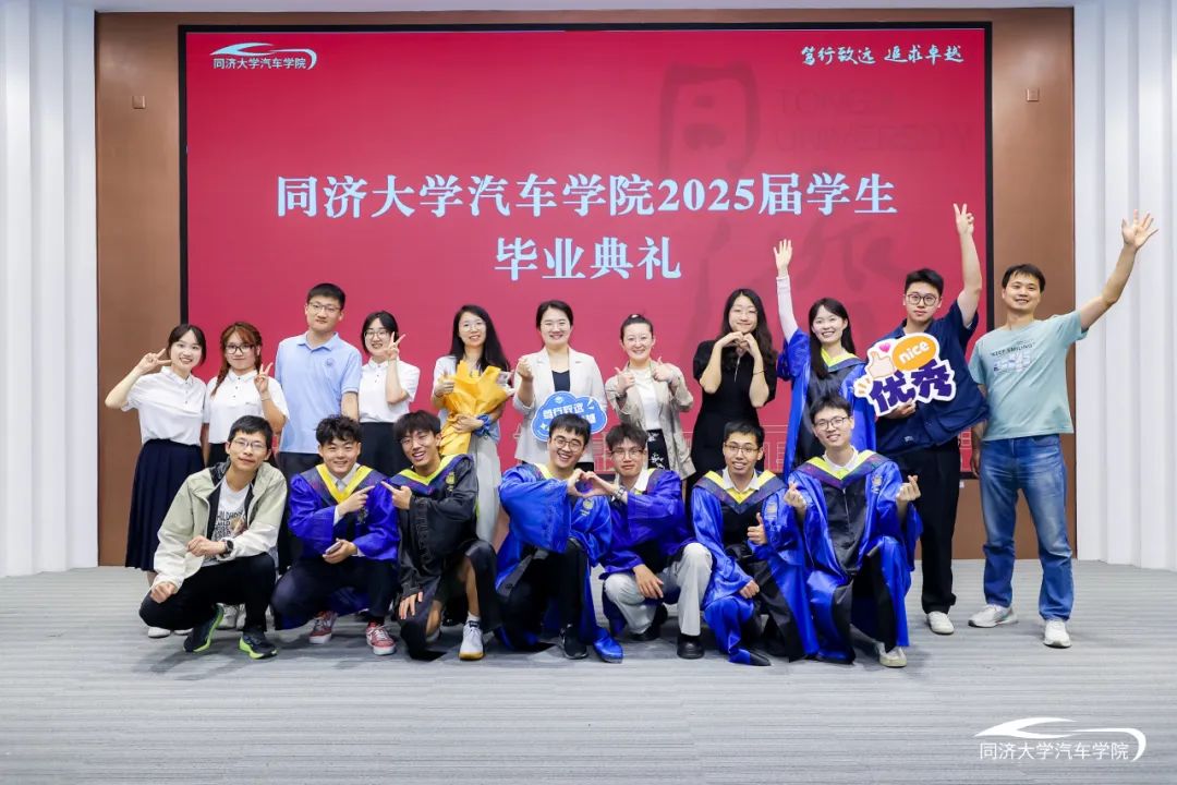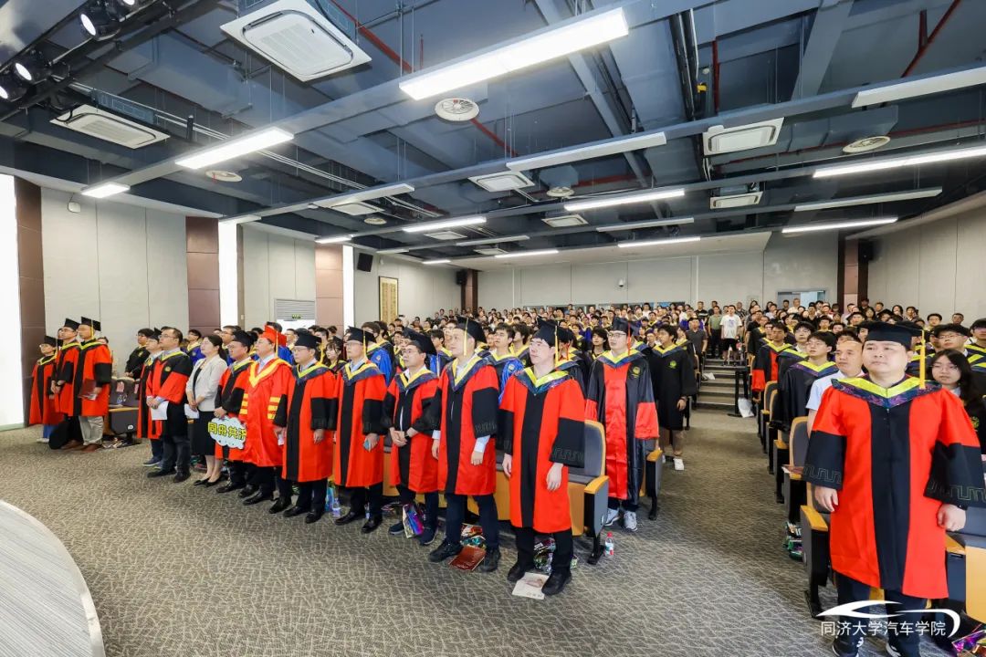 6月14日,“点燃梦想,‘汽’动未来”汽车学院2025届学生毕业典礼在同济大学新能源汽车工程中心顺利举行。同济大学汽车学院党委书记张立军,南昌智能新能源汽车研究院院长楼狄明,学院副院长赵治国,学院党委副书记、2022级硕士班班主任葛畅,学院副院长、2022级硕士班班主任黄岩军,学院2004级本科、2011级博士研究生校友、同济汽车创业者联盟副理事长、艾斯匹润滑剂测试(上海)有限公司中国区业务负责人童孙禹,以及学院教师代表、校友代表、家长们和毕业生们齐聚一堂,共同见证这一重要时刻。