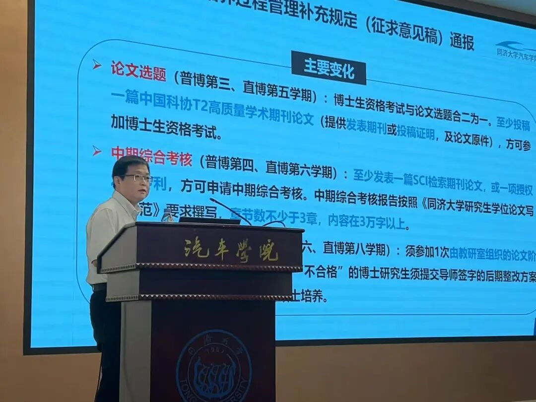 学院副院长黄岩军介绍了近期国家级平台“新能源汽车及动力系统国家工程研究中心”优化整合的进展情况。他表示,中心将通过资源整合与功能优化,进一步提升科研创新能力,为学院乃至学校的科研工作提供有力支撑。